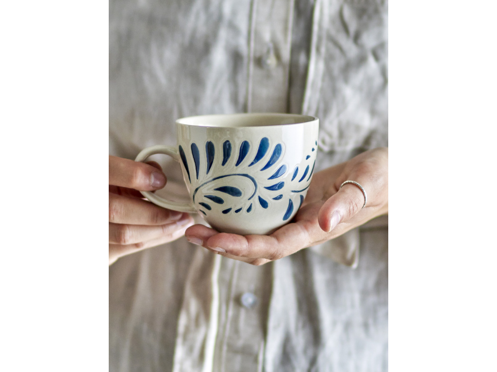 Kameninový hrnek Bloomingville Heikki bude skvělým doplňkem do vaší sbírky hrnečků a šálků. S hrnkem si můžete dopřát 240 ml oblíbeného kávy, čaje nebo jiného lahodného nápoje. Hrnek se pyšní krásnou béžovou glazurou, ručně zdobenou reliéfním modrým vzorem, což z něj činí jedinečný kousek.
