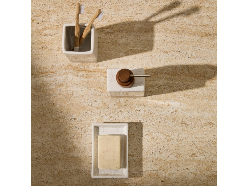 Série doplňků Careli přinese do vaší koupelny klid, čistotu a nadčasovou eleganci. Produkty jsou vyrobené z kameniny v jemném béžovém odstínu, působí minimalisticky, a přesto hřejivě – přesně tak, jak si představujeme prostor pro každodenní péči sami o sebe. V sérii najdete misku na mýdlo, dávkovač na tekuté mýdlo i stojan na kartáčky, které můžete snadno kombinovat a sladit do harmonického celku. Díky odolnému materiálu a jemnému glazovanému povrchu jsou tyto doplňky nejen krásné, ale i praktické na údržbu. Careli je ideální volbou pro ty, kteří věří, že právě drobnosti dotvářejí celkovou atmosféru interiéru!