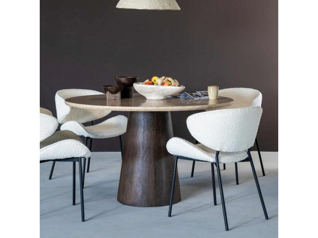 Jídelní stůl Aikin od značky Eleonora zaujme svou jedinečnou kamennou deskou z travertinu, která do vašeho interiéru vnese nádech luxusu a elegance. Travertin je přírodní druh vápence, který se vyznačuje živou texturou a s časem získává nezaměnitelnou patinu. Kamenná deska v kombinaci s podnoží z tmavého mangového dřeva vytváří působivý kontrast, který přitahuje pohledy a dodává stolu jedinečný charakter. Stůl Aikin se hodí jak do rustikálních, tak i do klasických interiérů. Je nejen praktickým kusem nábytku, ale také designovým skvostem, který do vašeho prostoru přinese nezaměnitelný šarm.