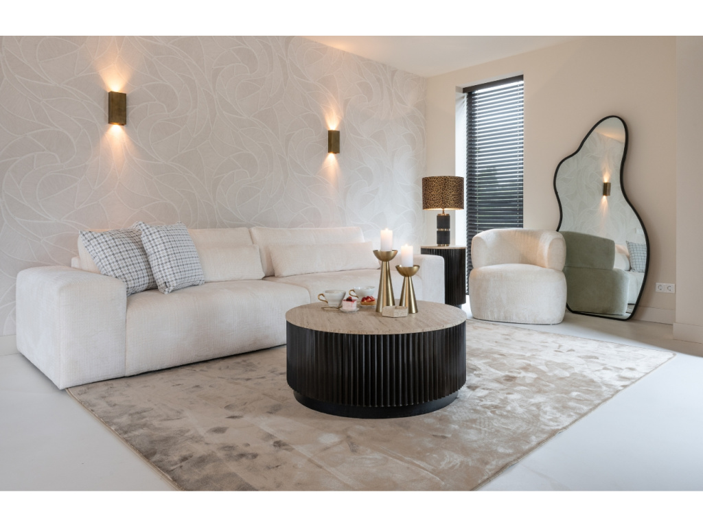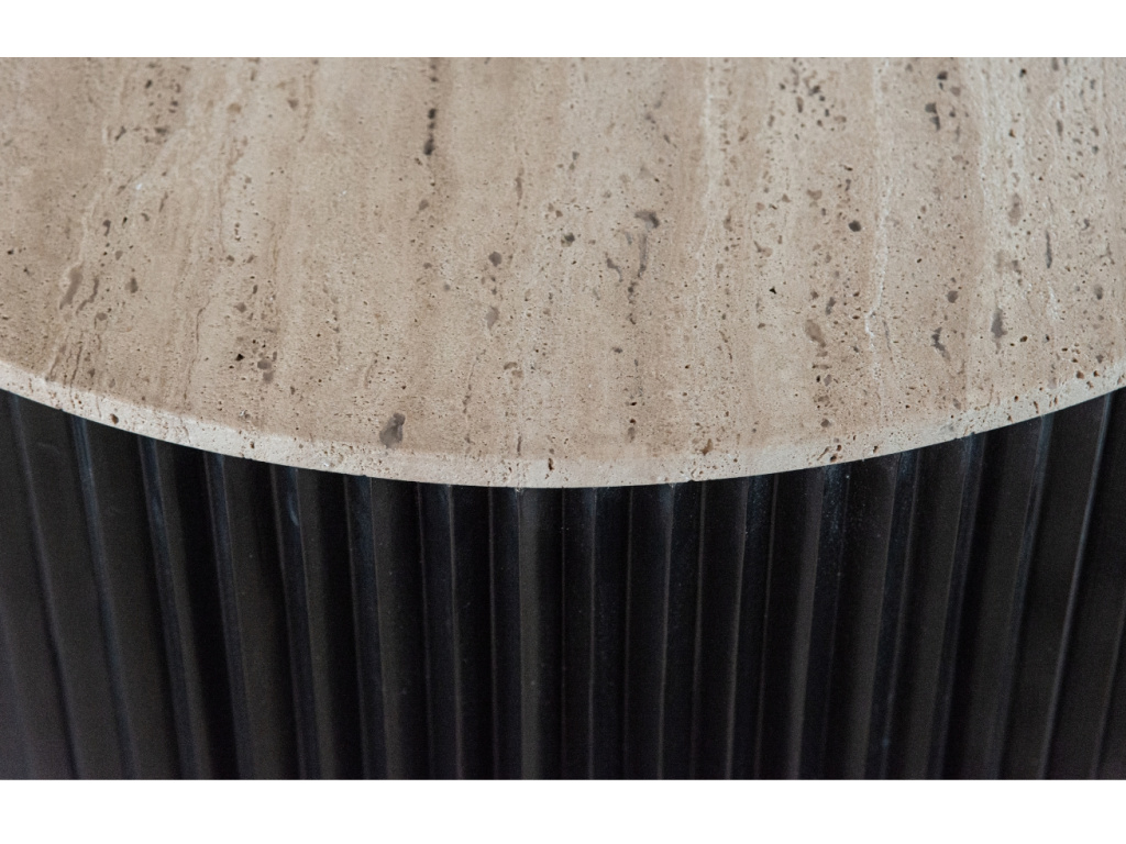 Konferenční stolek Richmond Hampton si získá vaši pozornost především pro jedinečnou kamennou deskou z italského Travertinu. Ta dodá interiéru nádech luxusu a elegance. Travertin je druh vápence s živoucí texturou, která dodává stolku přirozenou krásu a časem i jedinečnou patinu. Béžová kamenná deska spolu s robustní černou podnoží tvoří perfektní celek, který skvěle zapadne nejen do rustikálních prostorů.