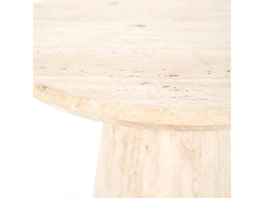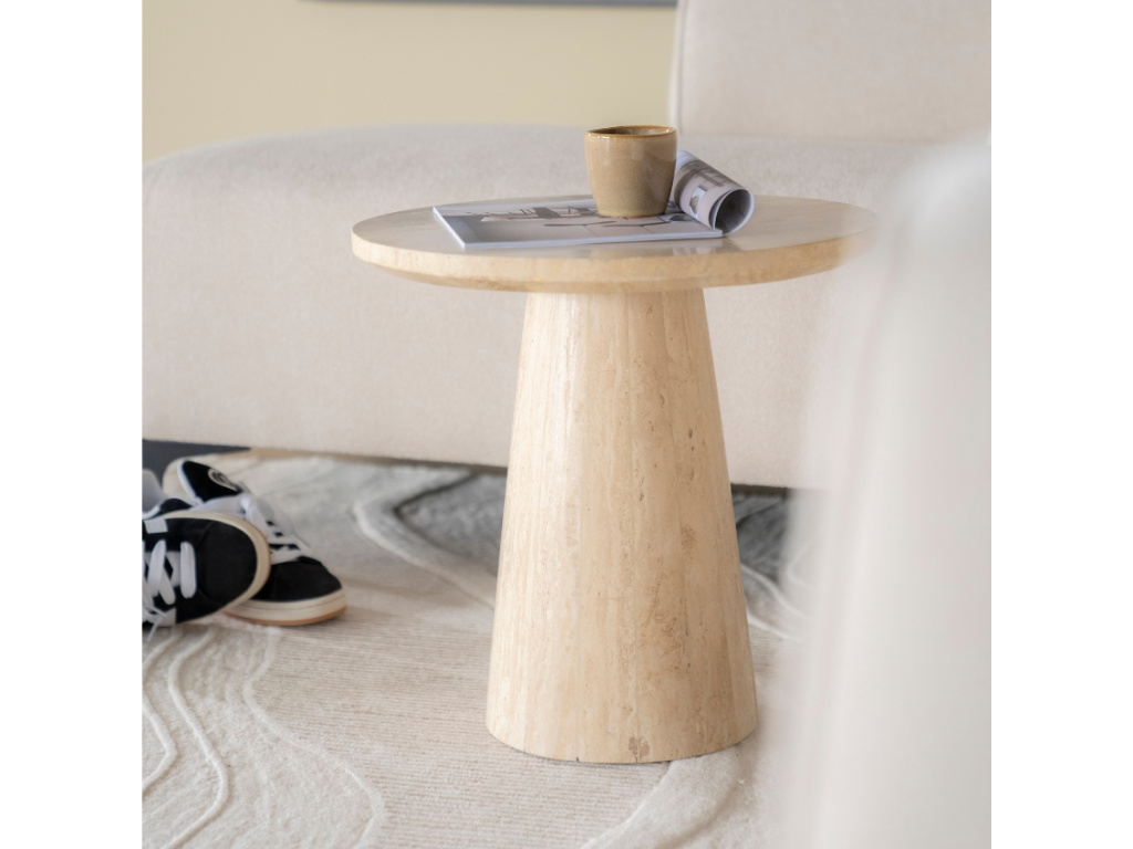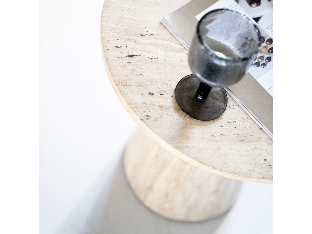 Odkládací stolek Aime od značky Eleonora si získá vaši pozornost především díky jedinečnému zpracování z travertinu. To dodá interiéru nádech luxusu a elegance. Travertin je druh vápence s živoucí texturou, která dodává stolku přirozenou krásu a časem i jedinečnou patinu. Stolek Aime je ideální pro umístění vedle pohovky, kde poslouží k odložení šálku kávy nebo vystavení vašich oblíbených dekorací. Doplňte ho o konferenční stolek Aime a vytvořte harmonický a elegantní interiér, který osloví na první pohled.