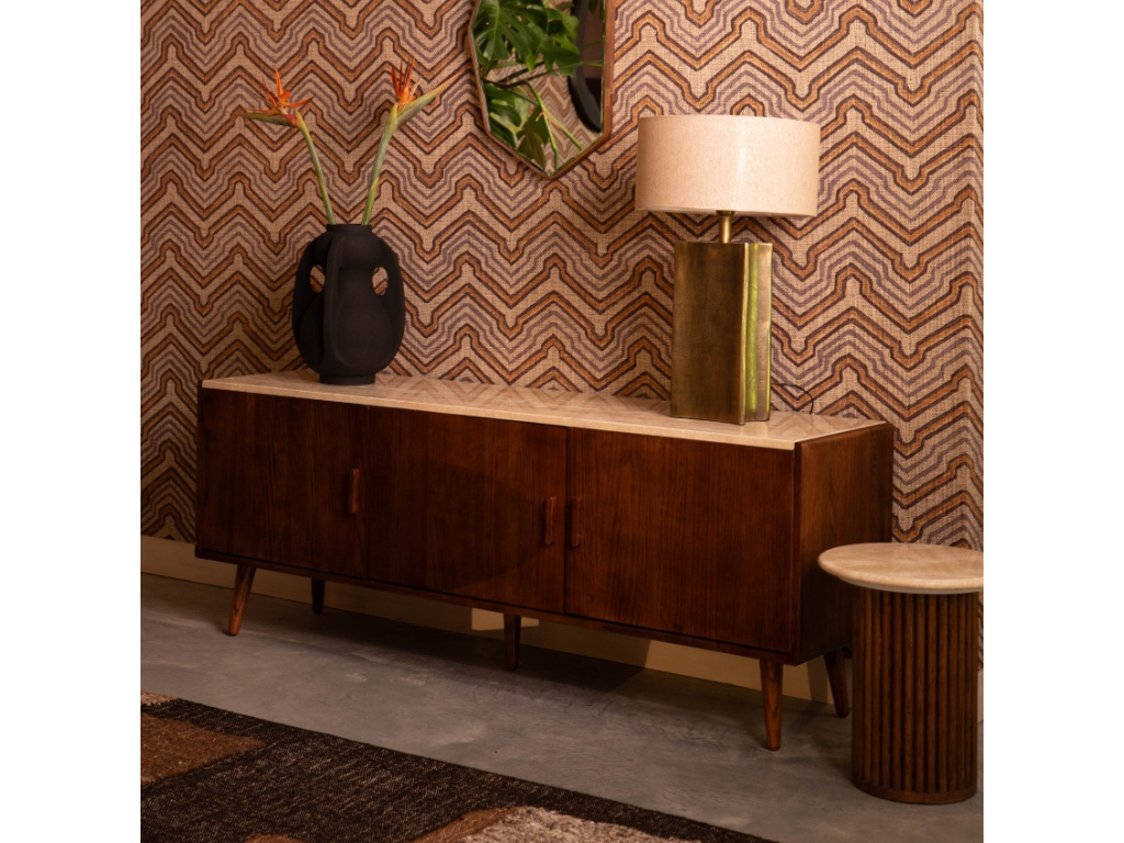 Odkládací stolek ARDA značky DUTCHBONE si získá vaši pozornost především pro jedinečnou kamennou deskou z travertinu. Ta dodá interiéru nádech luxusu a elegance. Travertin je druh vápence s živoucí texturou, která dodává stolku přirozenou krásu a časem i jedinečnou patinu. Kamenná deska spolu s robustní podnoží z dubové dýhy v ořechovém provedení tvoří perfektní celek. Stolek bude ideálním místem pro nápoje, TV ovladač nebo dekorativní předměty – zkrátka pro cokoliv si zamanete! ARDA zazáří v moderním i vintage interiéru a nejlépe ve společnosti dalšího nábytku z řady ARDA – zkompletujete celý set?