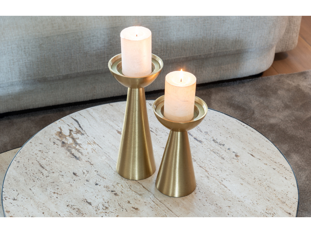 Kulatý odkládací stolek Avalon od značky Richmond bude elegantním doplňkem každé ložnice nebo obývacího pokoje. Tento poutavý kousek s bronzově lakovanou kovovou podnoží vnese do vašeho prostoru exkluzivní a rafinovaný nádech. Dokonale vyvážené proporce nabízejí vkusný styl, který zaujme každého, kdo k vám domů vkročí. Deska stolku je vyrobena z travertinu, který se stará o potřebnou odolnost, a navíc se velice snadno udržuje v čistotě. Avalon bude ideálním místem pro nápoje, TV ovladač nebo dekorativní předměty – zkrátka pro cokoliv si zamanete!