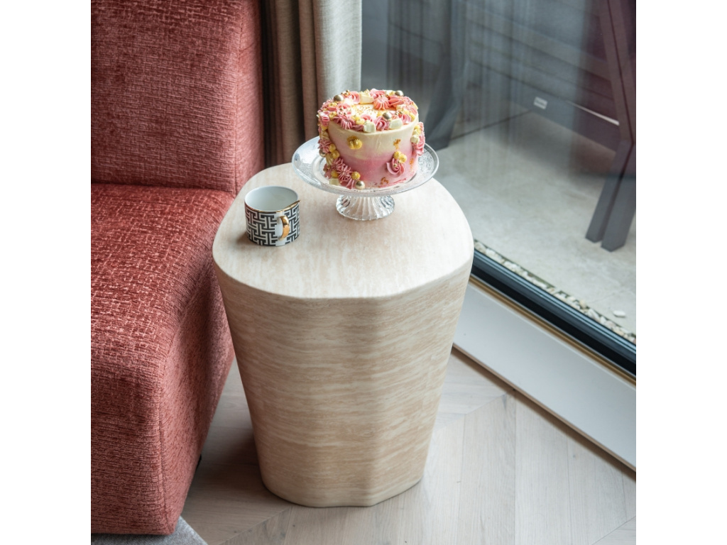 Odkládací stolek Fictus od značky Richmond si získá vaši pozornost svou masivní konstrukcí z travertinového kamene, který přinese interiéru nádech luxusu a elegance. Travertin je druh vápence vyznačující se odolností a porézní texturou, která stolku dodává přirozenou krásu a časem i jedinečnou patinu. Doplňte stolek o další produkty Richmond z tohoto výjimečného materiálu a vylaďte tak váš interiér k dokonalosti.
