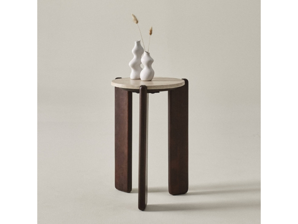 Hledáte odkládací stolek, který se stane stylovým doplňkem vašeho interiéru? TILOU spojuje přírodní materiály, precizní zpracování a jedinečný design, který dokonale podtrhne atmosféru vašeho domova. Deska je vyrobena z travertinu – přírodního kamene s jemnou porézní strukturou, která každému kusu propůjčuje jedinečný charakter. Podstavu tvoří tři pevné podnože z mangového dřeva, které nejen zajišťují stabilitu, ale také dodávají stolku osobitý vzhled. Podnože jsou navrženy tak, aby lehce přesahovaly okraj desky, čímž vytvářejí nečekaný designový prvek. Tato kombinace materiálů a promyšlených detailů dělá z TILOU výjimečný kousek, který skvěle zapadne do moderních, boho i industriálních interiérů. Ať už ho umístíte vedle pohovky, do ložnice jako noční stolek nebo třeba do čtecího koutku, TILOU vždy perfektně zapadne a dodá prostoru šmrnc. Dopřejte svému interiéru špetku přírodní elegance s odkládacím stolkem TILOU.