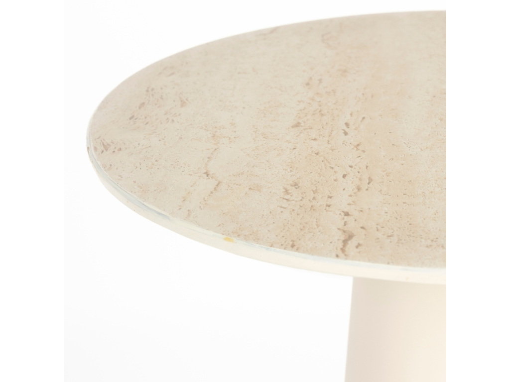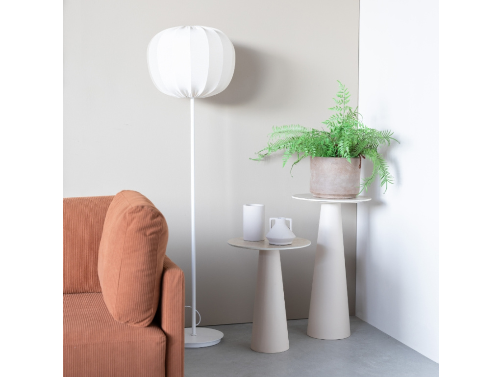 Minimalistický odkládací stolek JOYA od značky White Label Living se stane praktickým místem k odložení vaší oblíbené knížky nebo šálku kávy. Nejvíce mu to bude slušet vedle pohovky nebo křesla, umístit ho ale můžete také například do rohu místnosti, kam na něj lze umístit vaše oblíbené dekorace či květiny. Keramická deska dokonale ladí s hladkou kovovou podnoží slonovinově béžové barvy. Stolek je dostupný ve dvou různých velikostech.