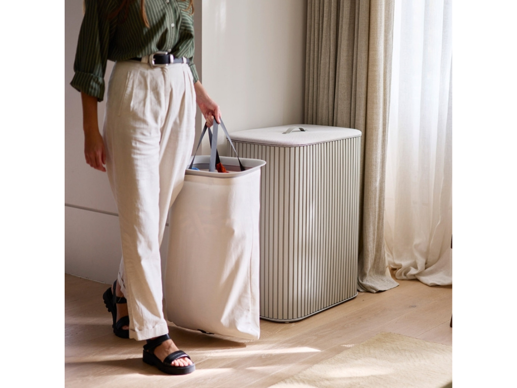Zapomeňte na nevzhledné plastové koše – Tota Trio Luxe od značky Joseph Joseph přinese do vaší domácnosti eleganci, praktičnost a chytrý systém v jednom. Elegantní bambusový plášť, víko potažené látkou a jemné detaily v podobě koženého madla z něj dělají designový kousek, který se stane ozdobou ložnice, koupelny i šatny. Uvnitř se ukrývají tři prostorné pytle na prádlo, které vám umožní třídit oblečení rovnou při odkládání. Pytle mají praktická madla i pomocné úchyty ve spodní části pro snadné vysypání přímo do pračky. Tota Trio Luxe dokazuje, že i ten nejběžnější úkol v domácnosti si zaslouží špetku stylu a maximální funkčnost. Je tichým, ale nepostradatelným pomocníkem pro každého, kdo si potrpí na krásný a praktický domov.