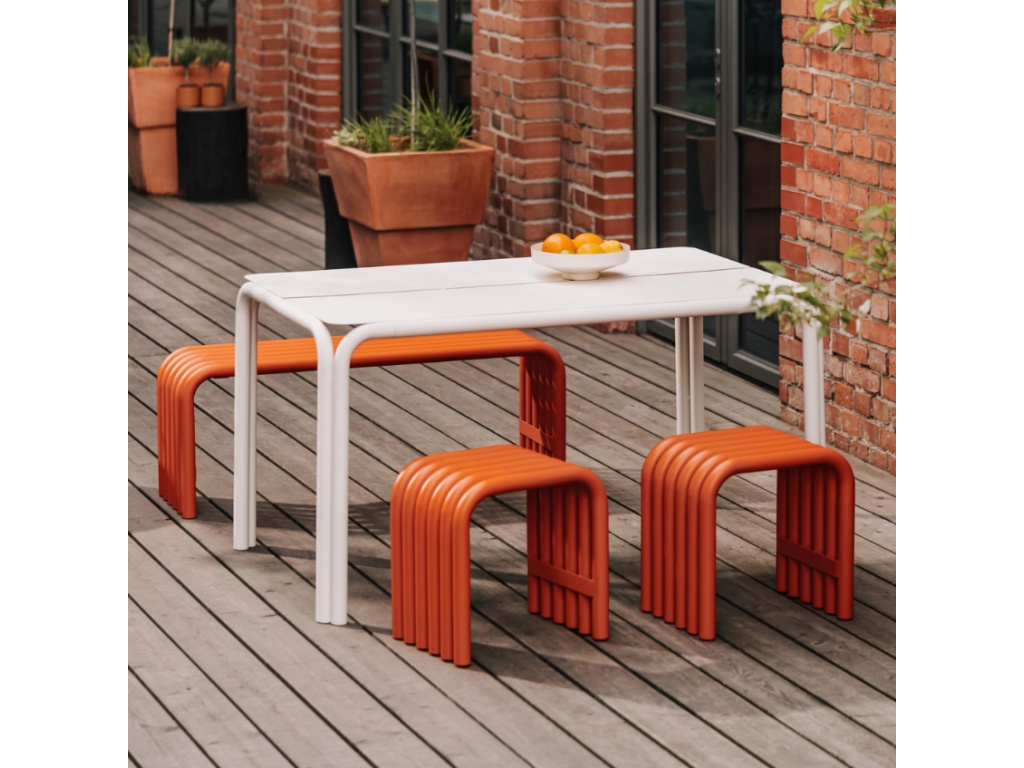 Moderní a designový stůl Nokk bude stylovým a poutavým doplňkem vašeho interiéru. Celoocelová robustní konstrukce se vyznačuje svou voděodolností a odolností vůči poškození, což vám zaručuje dlouhodobé užívání bez známek poškrábání či deformace. Přivítejte Nokk ve vašem interiéru a oživte tak vaší jídelnu, terasu nebo lobby. Nokk pochází z dílny mladých designérů – Anna Pietkun, Zuza Muszalska, Alicja Molińska, Damian Goliński, kteří se zaměřují na minimalismus, udržitelnost a poctivost materiálů.