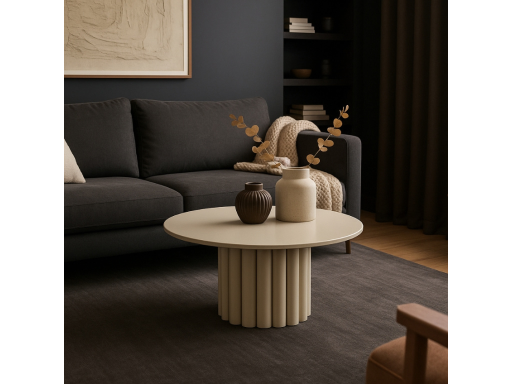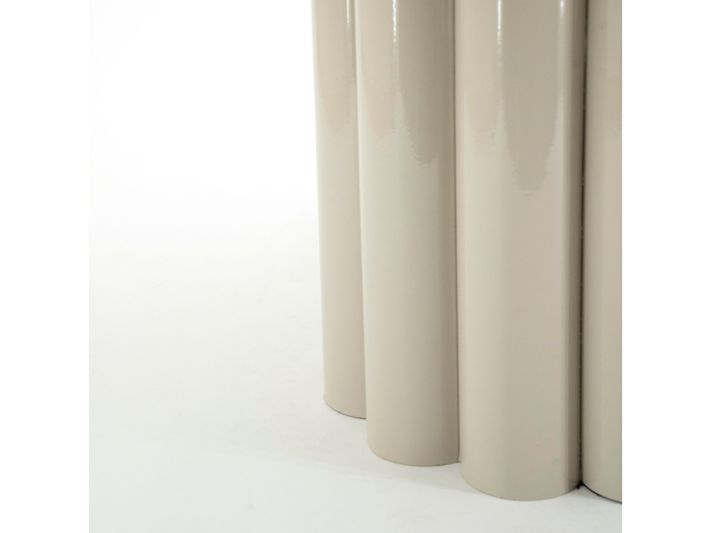 Stolek Olympa zaujme výraznou podnoží s válcovitým tvarováním, která mu dodává jedinečný charakter. Lakovaný kov zajišťuje odolnost a moderní lesklý povrch, který se bude vyjímat v interiérech s industriálním nebo futuristickým nádechem. Poslouží jako atraktivní základna pro vázy, mísy či jiné dekorace, které chcete vystavit. Olympa nejen zkrášlí váš obývací prostor, ale také dodá neotřelý designový prvek.