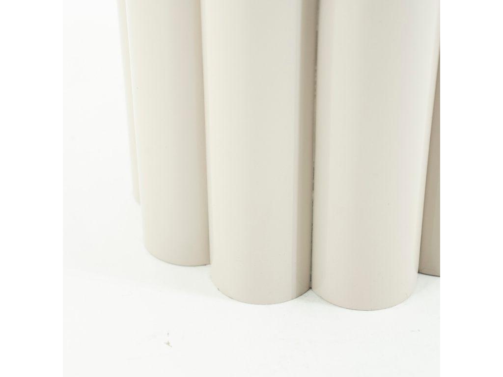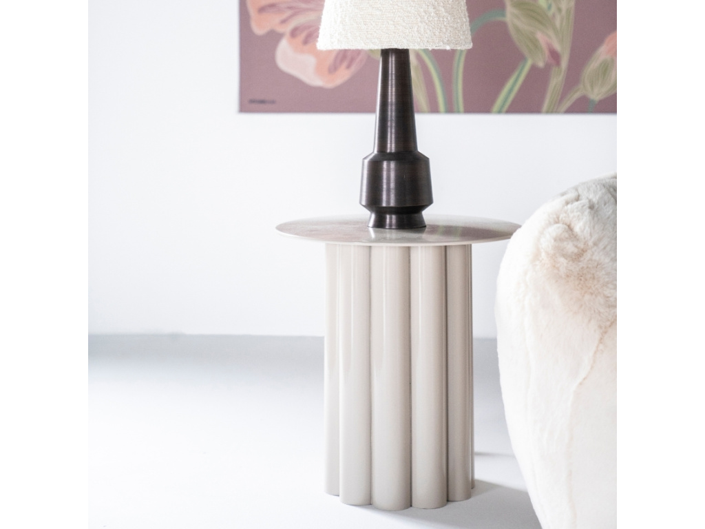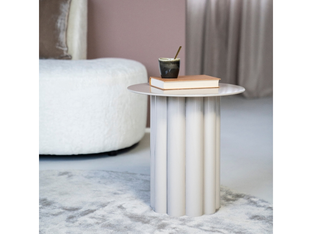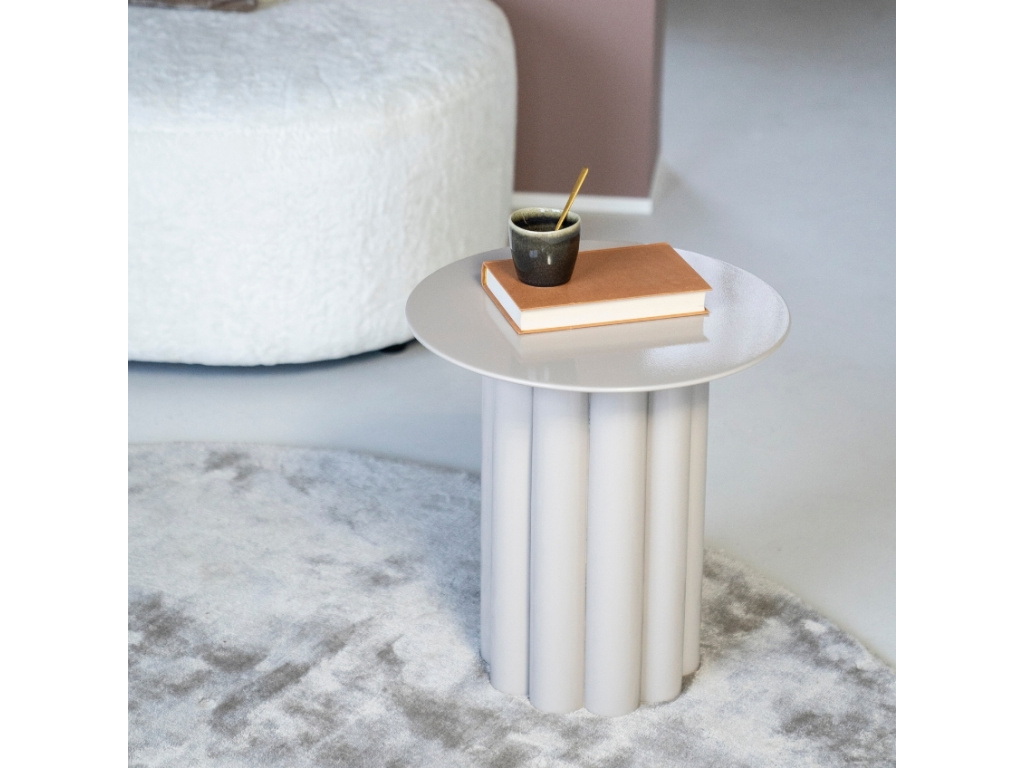 Stolek Olympa zaujme výraznou podnoží s válcovitým tvarováním, která mu dodává jedinečný charakter. Lakovaný kov zajišťuje odolnost a moderní lesklý povrch, který se bude vyjímat v interiérech s industriálním nebo futuristickým nádechem. Poslouží jako atraktivní základna pro vázy, mísy či jiné dekorace, které chcete vystavit. Olympa nejen zkrášlí váš obývací prostor, ale také dodá neotřelý designový prvek.