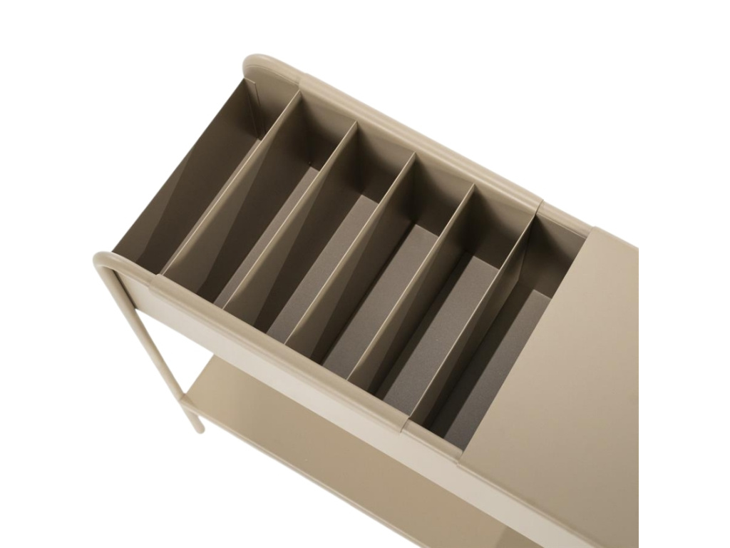 Regál Sera v jemném béžovém provedení je ideálním kusem nábytku pro každou moderní domácnost, která klade důraz na praktičnost a elegantní design. Jeho čisté linie a neutrální barevnost se snadno kombinují s dalšími prvky v interiéru, zatímco víceúčelová konstrukce nabízí řadu možností pro ukládání věcí. Vrchní odnímatelný organizér skvěle poslouží pro zatřízení knih nebo časopisů. Taktéž odnímatelná svrchní deska pod sebou ukrývá praktický úložný prostor. Díky prostorné policii máte k dispozici další místo na vystavení dekorací či odkládání každodenních nezbytností. Regál Sera je flexibilní a můžete si jej přizpůsobit podle svých potřeb, což z něj činí nejen stylový, ale i velmi praktický kus nábytku.
