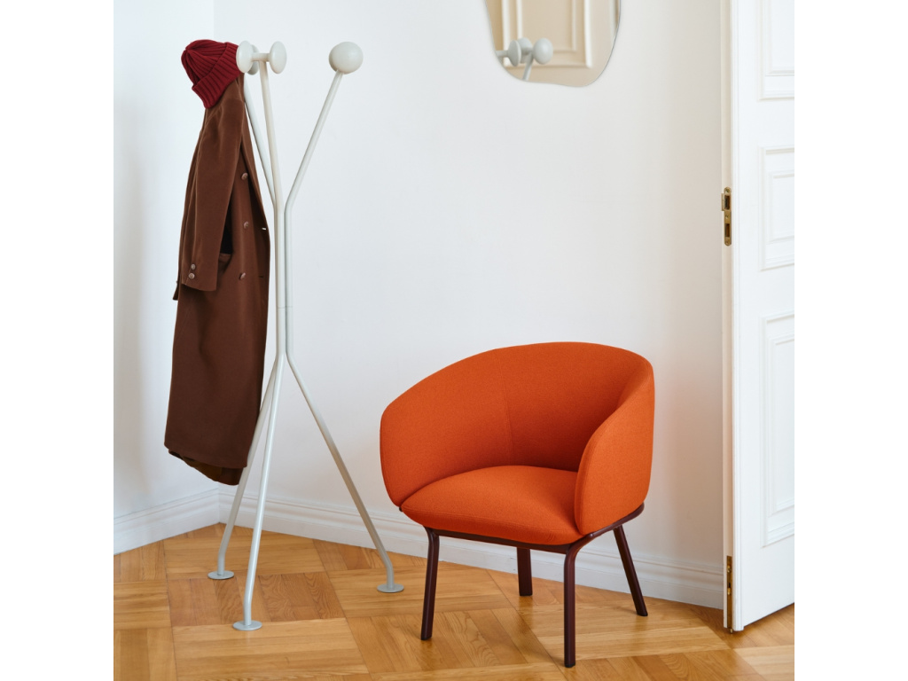 Věšák Ramo od značky .mdd je ukázkou toho, jak může být i každodenní objekt proměněn v estetický zážitek. Autorkou návrhu je Maria Jeglińska-Adamczewska, designérka, která věří, že design má překvapovat, zpochybňovat zažité formy a přinášet nový pohled na to, co nás obklopuje. Jeho název v italštině znamená větev – a přesně tak působí i na pohled. Subtilní ocelová konstrukce se ladně větví do tří ramen zakončených hladkými detaily z masivního jasanu, které připomínají větvičky stromu. Každá linie, proporce i zaoblení byla promyšlena tak, aby celek působil vyváženě, lehce a přirozeně. Ramo se dokonale hodí do kanceláře, hotelové haly či moderního bytu, kde vytvoří klidný vizuální rytmus a zároveň poskytne spolehlivé místo pro kabáty, tašky či doplňky.
