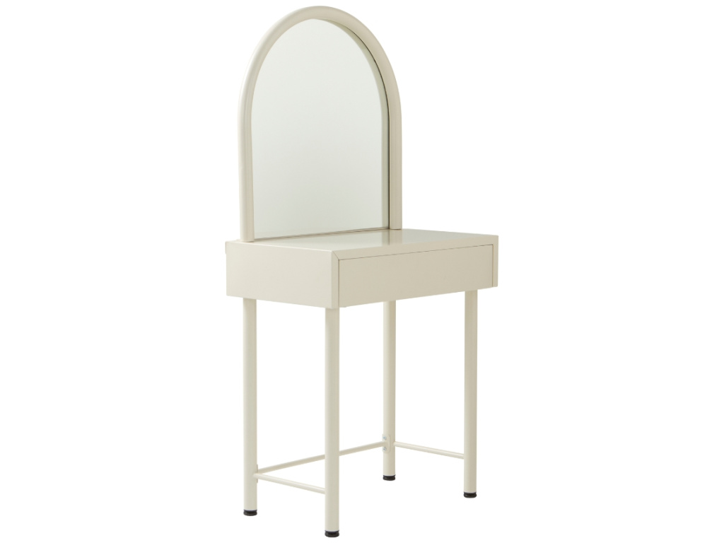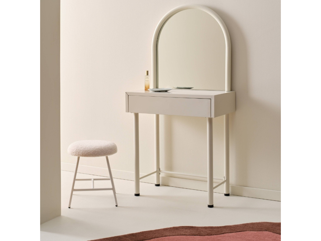 Toaletní stolek RUE je jemný a stylový doplněk, který promění každý dětský nebo dívčí pokoj v osobní útočiště krásy a fantazie. Kovový rám s matnou povrchovou úpravou působí vzdušně a moderně, zatímco integrované zrcadlo a praktická zásuvka dodávají stolku funkčnost, kterou si malé parádnice zamilují. Ideální pro ranní česání, zkoušení doplňků nebo první experimenty s make-upem. Díky kompaktním rozměrům se snadno vejde i do menšího pokoje, přesto poskytne vše, co je ke každodenní rutině potřeba.