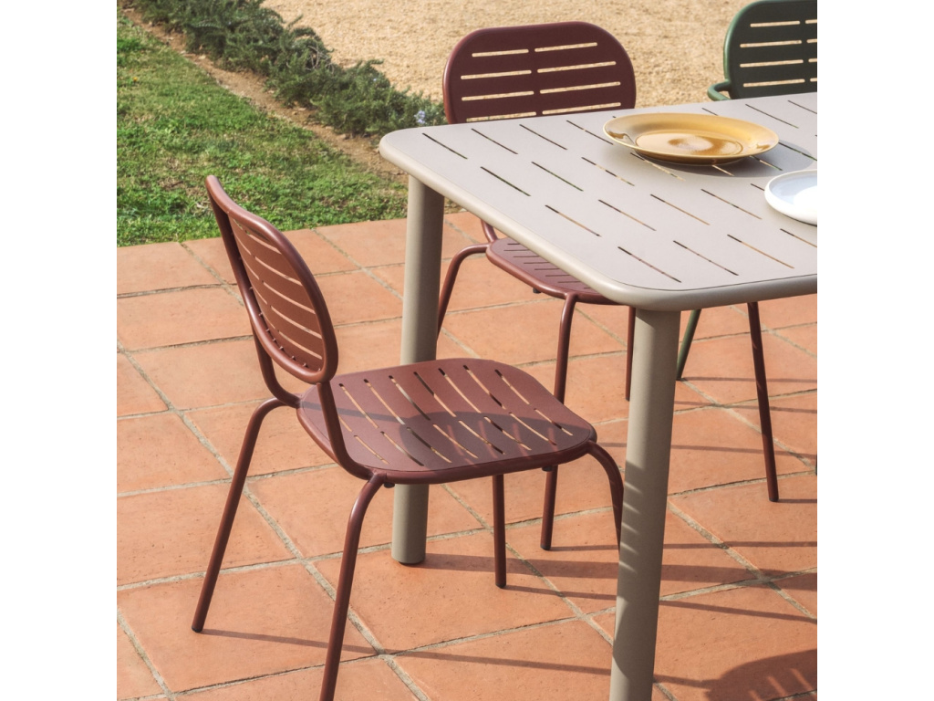 Kolekce zahradního nábytku Brai od značky Kave Home vyniká minimalistickým designem s oblými tvary a jemnými drážkami, které poskytují vizuální lehkost a současně praktičnost. Stůl v béžovém odstínu je vyroben z pozinkované oceli, která je vůči oděru a korozi odolnější než běžná ocel. Základna je vyplněna cementem pro perfektní stabilitu a plastové chrániče chrání podlahu před poškrábáním. K dispozici je také varianta s obdélníkovou deskou a několik barevných provedení pro dokonalé sladění s vaší terasou či zahradou.