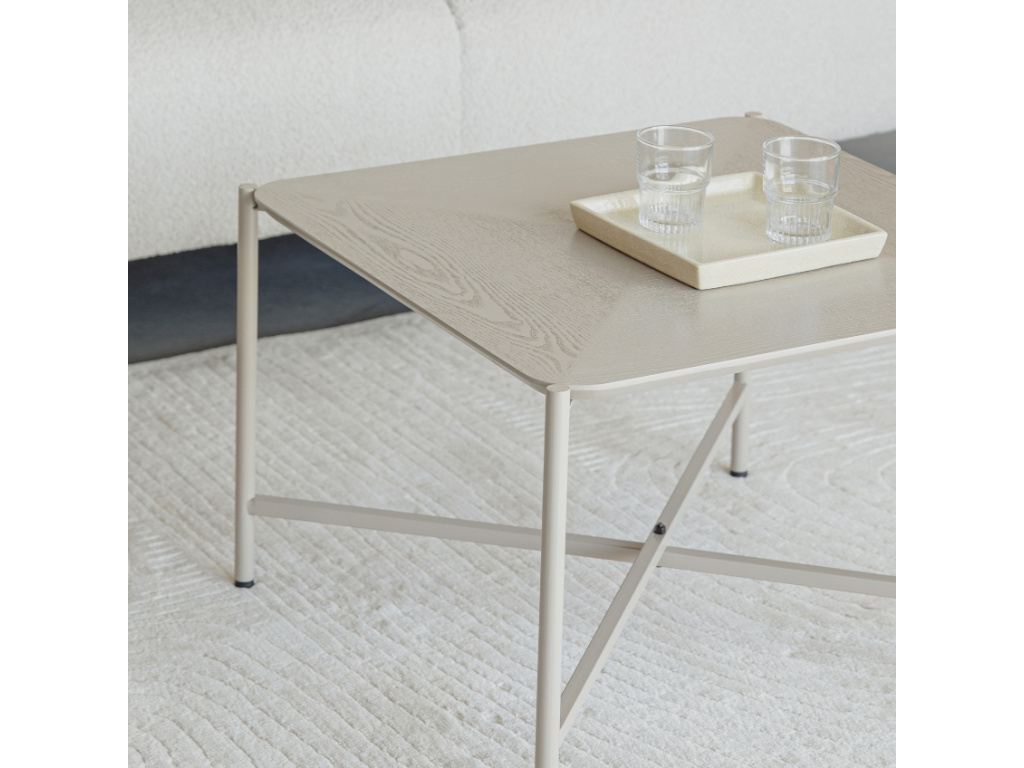 Konferenční stolek MARCIO od značky White Label Living představuje funkční designový doplněk v minimalistickém pojetí. Čtvercová deska, vyrobena z lakovaného MDF, disponuje zaoblenými hranami, které vytváří měkčí vzhled stolku. Stabilitu zajišťuje štíhlá kovová podnož ze zajímavým prvkem v podobě dvou překřížených tyčí. Stolek působí vzdušným a lehkým dojmem a bude nenápadným, leč stylovým společníkem ve vašem obývacím pokoji.
