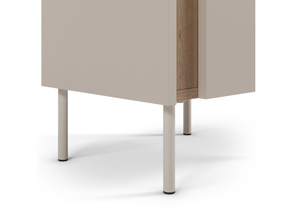 Noční stolek Lucile od značky Marckeric zaujme čistými liniemi, jemným béžovým odstínem a kombinací matné povrchové úpravy s přírodním dekorem dřeva. Vyroben je z odolné dřevovláknité desky MDF, přičemž prakticky vyvýšené okraje horní desky chrání vystavené předměty před pádem – ideální volba do domácností s malými dětmi nebo domácími mazlíčky. Svým nadčasovým vzhledem zapadne do moderních, skandinávských i minimalistických interiérů. Kolekce Lucile nabízí také TV stolek a celkem čtyři varianty komod.