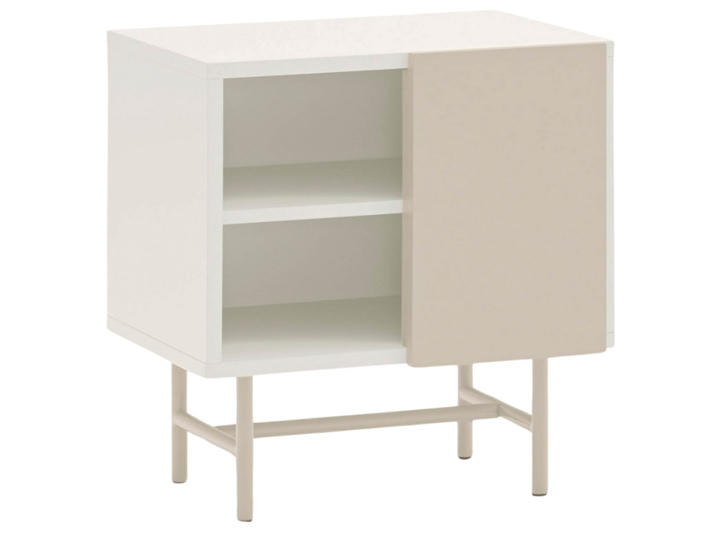 Minimalistický noční stolek Nube od španělské značky Teulat vás oslní elegantním designem i praktickým uspořádáním věcí. Úložný prostor stolku je tvořen dvojicí prostorných polic, které můžete zakrýt posuvnými dvířky. Ať už se tak rozhodnete využít úložný prostor na cokoliv, můžete se spolehnout na diskrétní ukrytí vašich pokladů před zraky ostatních. Díky bezúchytkovému provedení vyniknou jednoduché a čisté linie stolku. Použité lakované MDF vás jistě potěší snadnou údržbou a vysokou odolností. Stolek, stejně jako další komody a TV stolky ze série Inari, nabízíme ve třech různých barevných provedeních.