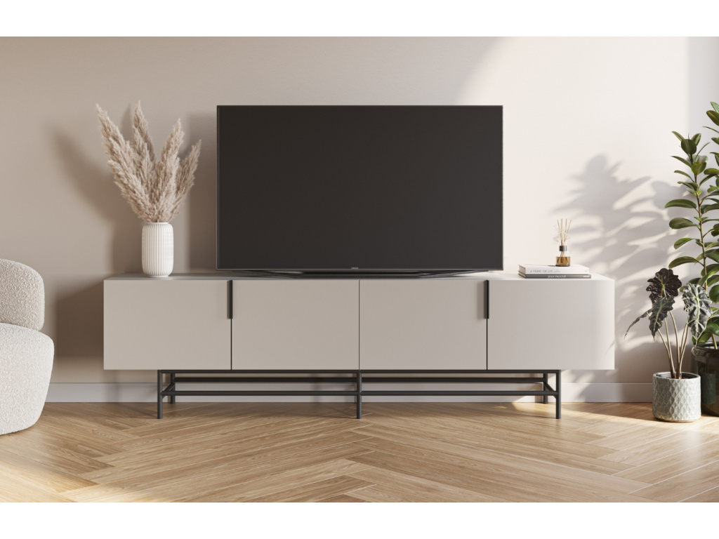 Televizní stolek Eldia od značky Marckeric oslní minimalistickým designem v elegantním krémovém odstínu, který doplňuje černá kovová podnož a subtilní černé úchytky. Nábytek je vyroben z odolné MDF desky, díky čemuž si zachovává pevnost a dlouhou životnost. Skvěle zapadne do industriálních nebo skandinávských interiérů, kde vynikne svou decentní barevností a lehkostí provedení. Kolekce Eldia nabízí více barevných variant a více kousků nábytku ke sladění – nízkou komodu, vysokou komodu a TV stolek.