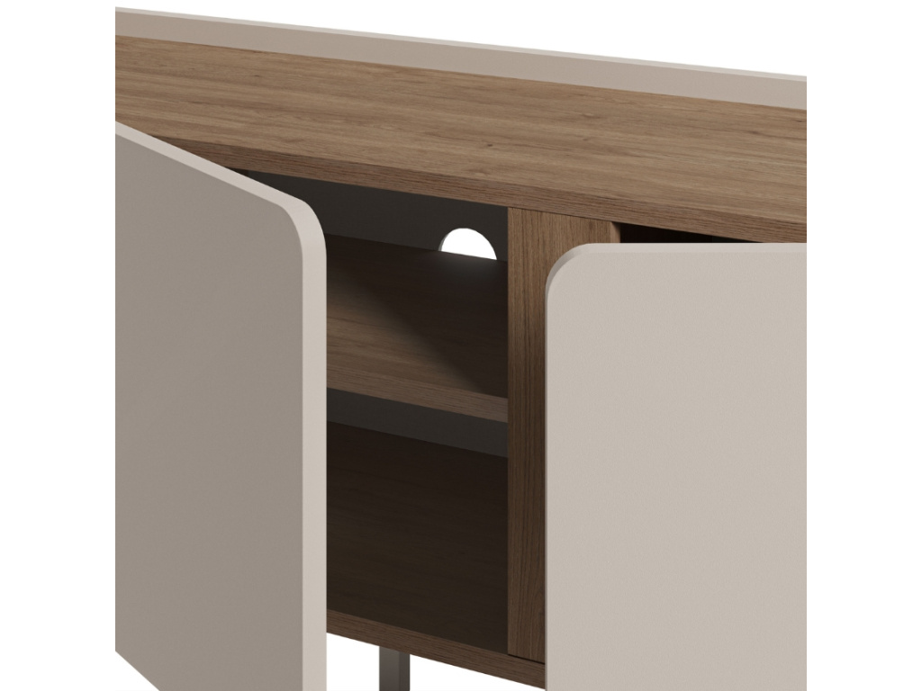 Televizní stolek Lucile od značky Marckeric zaujme čistými liniemi, jemným béžovým odstínem a kombinací matné povrchové úpravy s přírodním dekorem dřeva. Vyroben je z odolné dřevovláknité desky MDF, přičemž prakticky vyvýšené okraje horní desky chrání televizi nebo vystavené předměty před pádem – ideální volba do domácností s malými dětmi nebo domácími mazlíčky. Svým nadčasovým vzhledem zapadne do moderních, skandinávských i minimalistických interiérů. Kolekce Lucile nabízí také noční stolek a celkem čtyři varianty komod.
