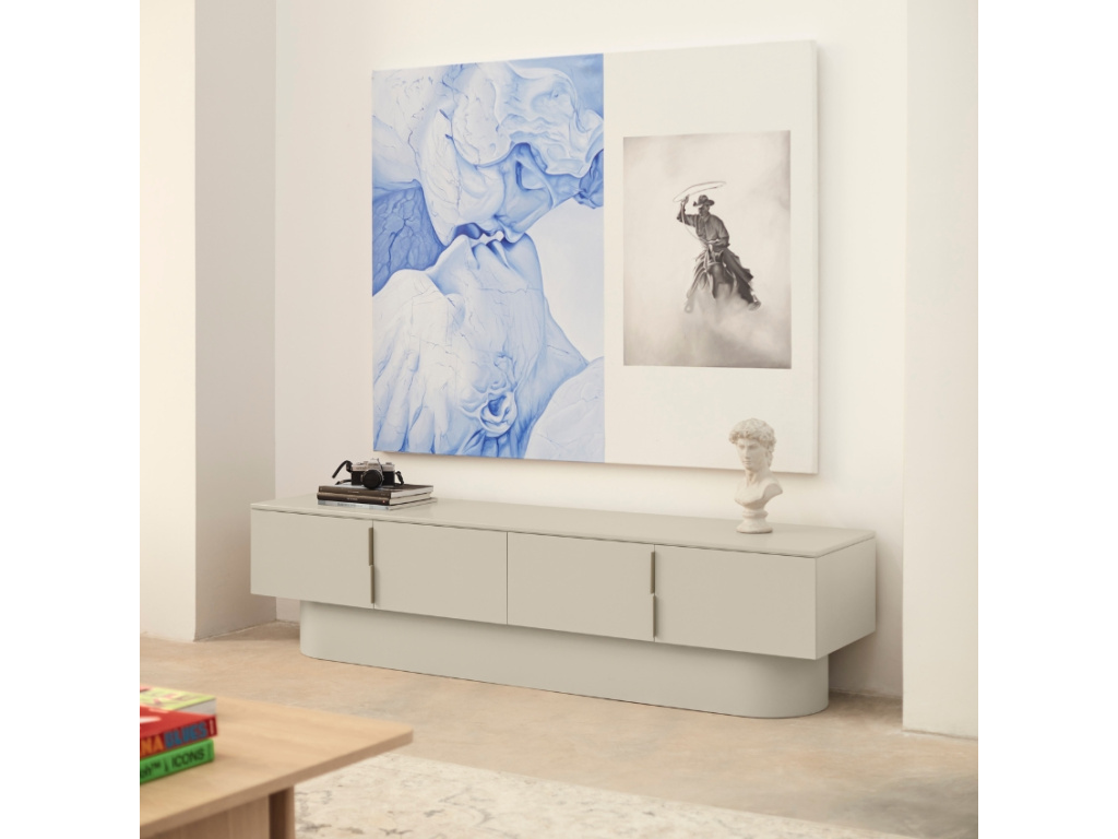 Hledáte elegantní minimalistické řešení úložných prostor? Série Totem od značky Teulat bude skvělou volbou! Najdete v ní komody, TV stolek i noční stolek – vše vzniklo v designovém studiu PerezOchando a každý z kousků si můžete pořídit v béžovém i antracitovém zbarvení. Prostorný TV stolek o šířce 200 cm přinese do interiéru úložný prostor v podobě 4 polic ukrytých za čtveřicí dvířek, která disponují systémem zavírání soft close – uložený inventář tak bude skrytý před zraky vašich návštěv. Použité lakované MDF navíc potěší snadnou údržbou a vysokou odolností. Vpusťte tuto stylovou sérii do vašeho moderního minimalistického interiéru, zaujme především zajímavě řešenou podnoží, která má podobu vyvýšeného centrálního podstavce.