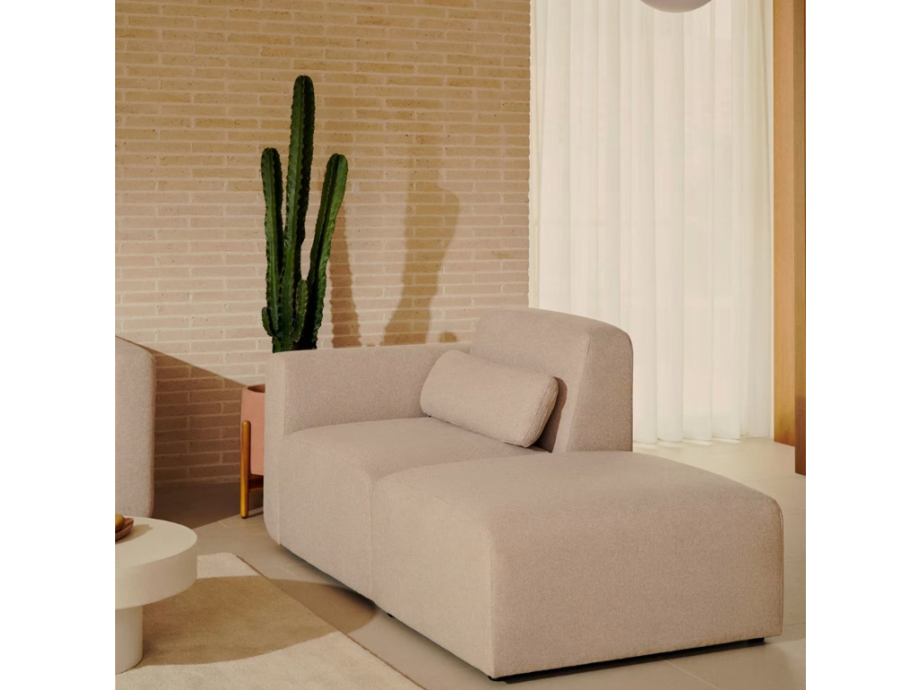 Koncový modul Kave Home Neom pochází z modulární série, díky které si můžete vytvořit pohovku přesně podle vašich potřeb. Jednotlivé části série Neom jednoduše seskládejte tak, aby vyhovovali velikosti vašeho obývacího pokoje a vy jste získali přesně tolik místa k sezení, kolik potřebujete. A když vás přestane současné rozmístění bavit, můžete pohovku kdykoliv zase přeskládat! Modul je stejně jako zbytek série čalouněný kvalitní látkou v atraktivním jemném béžovém odstínu, která díky vysokému martindale může být bez problémů využita nejen v domácnostech, ale také v komerčních prostorech.