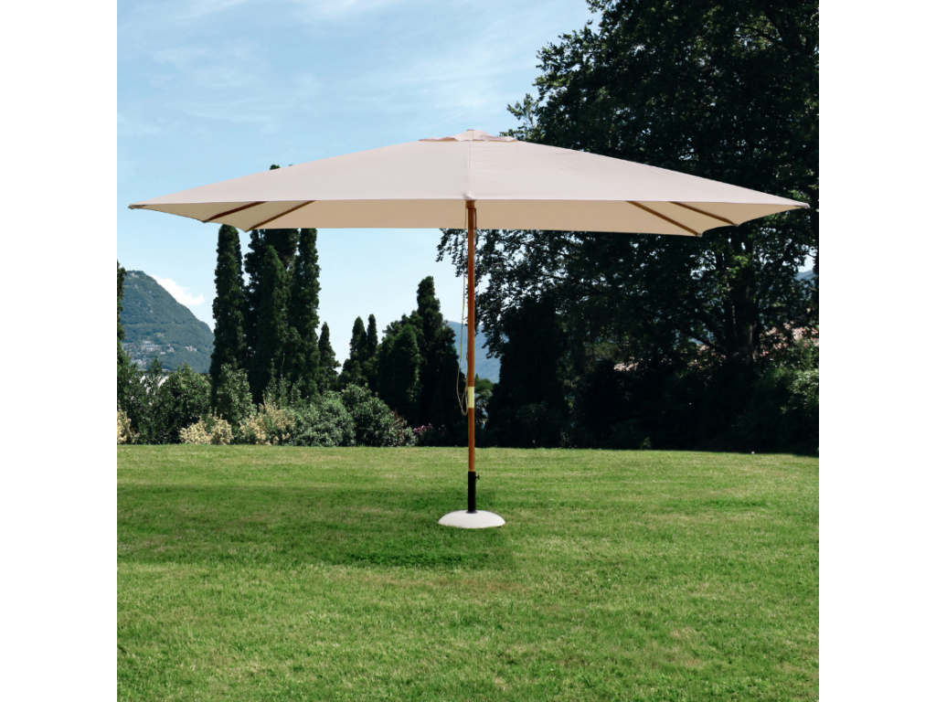 Moderní slunečník Bizzotto Syros bude oblíbeným společníkem na vaší terase, nebo u bazénu. Syros si vás získá retro designem. Dřevěná konstrukce s ocelovými spojkami a se systémem dvojité kladky, zaručí dobrou stabilitu. Odolný polyesterový potah v béžovém odstínu s větracím otvorem uprostřed harmonicky ladí k dřevěné konstrukci. Slunečník se skvěle hodí k nábytku s přírodními prvky jako je ratan nebo mangové dřevo.