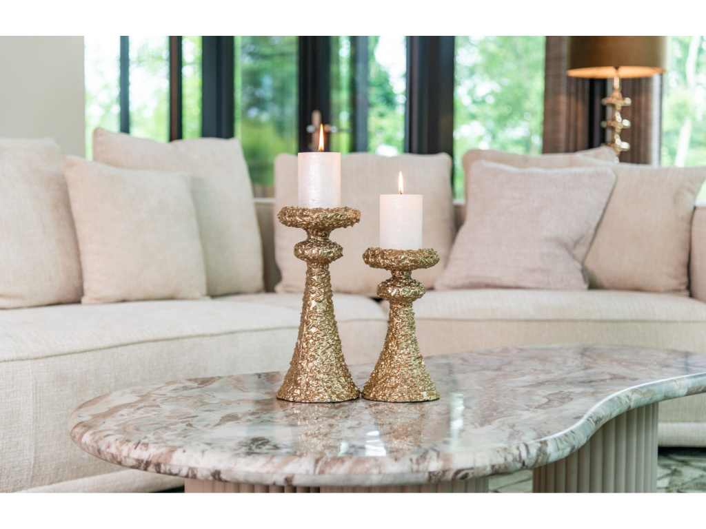 Konferenční stolek Coronel přinese do obývacího pokoje neotřelý design a přirozenou eleganci. Jeho organicky tvarovaná mramorová deska s jemnými béžovohnědými žílami působí jako umělecké dílo inspirované přírodou. Válcová podnož s žebrovaným povrchem dodá stolku vizuální dynamiku a nadčasový vzhled. Bude skvěle fungovat jako středobod vašeho posezení, ideální pro servírování kávy nebo vystavení dekorací. Skvěle doplní interiéry v duchu moderního luxusu nebo art deco.