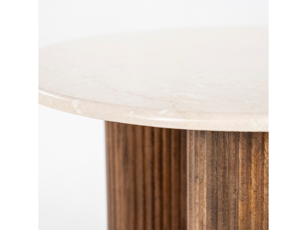 Odkládací stolek Xavi od značky Eleonora spojuje funkčnost s elegancí a přinese do vašeho interiéru praktický prvek s působivým designem. Čisté linie spolu s béžovou mramorovou deskou a podnoží z mangového dřeva vytvářejí elegantní kontrast, který zaujme na první pohled. Tento jedinečný stolek je ideální volbou pro ty, kteří chtějí stylově doladit svůj prostor a zároveň získat praktické místo pro odkládání. Učiňte svůj domov ještě krásnějším s odkládacím stolkem Xavi.