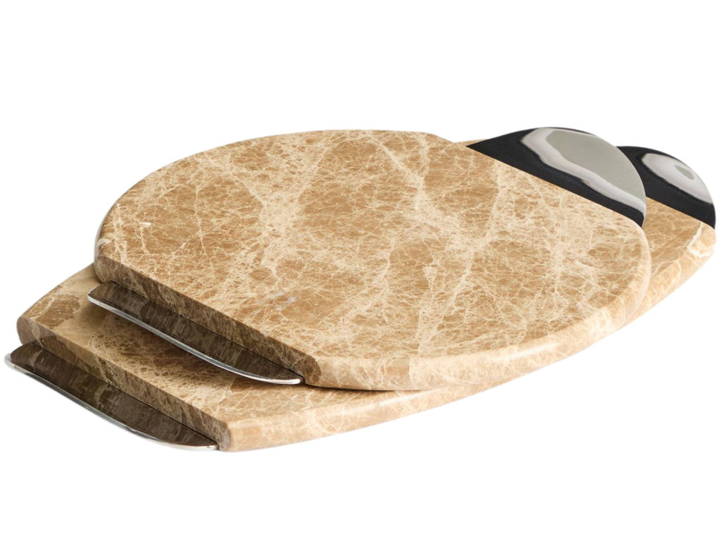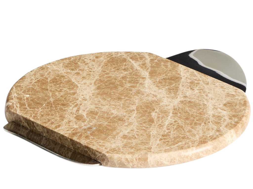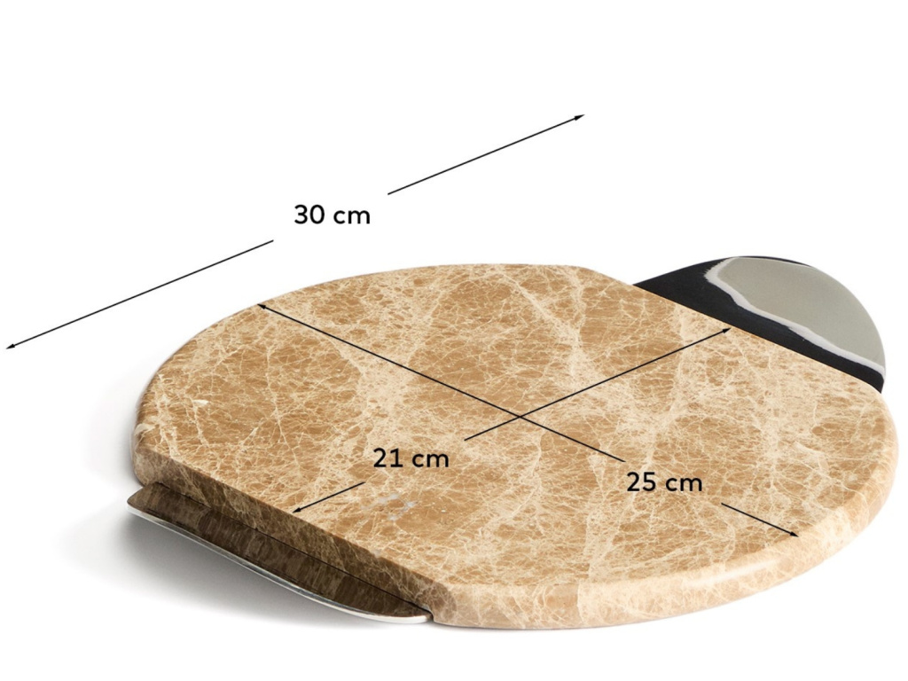 Servírovací podnos Adoma z luxusního béžového mramoru se stane dominantou vašeho prostřeného stolu díky své unikátní přírodní kresbě. Elegantní kovové úchyty jemně doplňují kamenný povrch a zajišťují pohodlnou manipulaci při podávání oblíbených delikates. Tento nadčasový kousek v sobě spojuje organickou krásu mramoru s čistým designem, který vynikne v moderních i klasicky laděných interiérech.