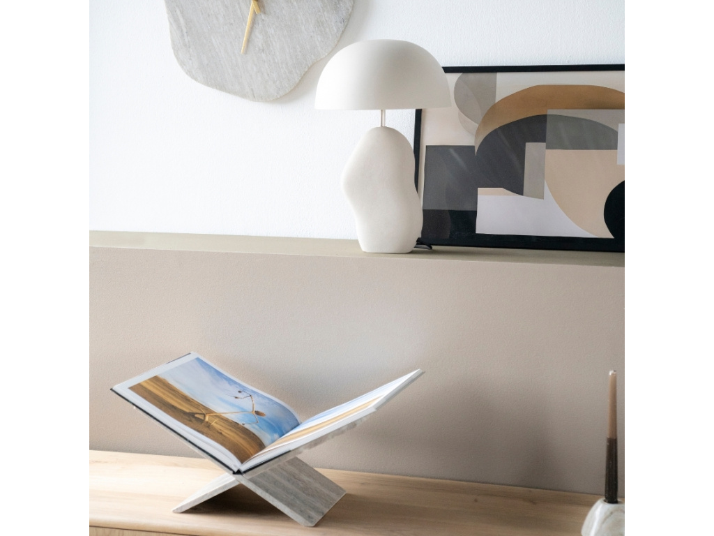 Stojan na knihy Tsun z přírodního mramoru je dokonalým propojením elegance a funkčnosti. Minimalistický design ve tvaru kříže nejen pomůže zorganizovat vaše knihy nebo vám poslouží při jejich četbě, ale zároveň se díky němu stojan stane sofistikovanou dekorací na poličce či pracovním stole. Díky robustnímu materiálu je stabilní a odolný, ideální i pro těžší knihy či časopisy. Mramor je přírodní materiál, takže každý kus bude jedinečný svou kresbou a texturou, což dělá z každého stojanu unikátní doplněk do moderního interiéru. Tento kousek v sobě nese nadčasovou krásu přírody a vynikne v každém prostoru.