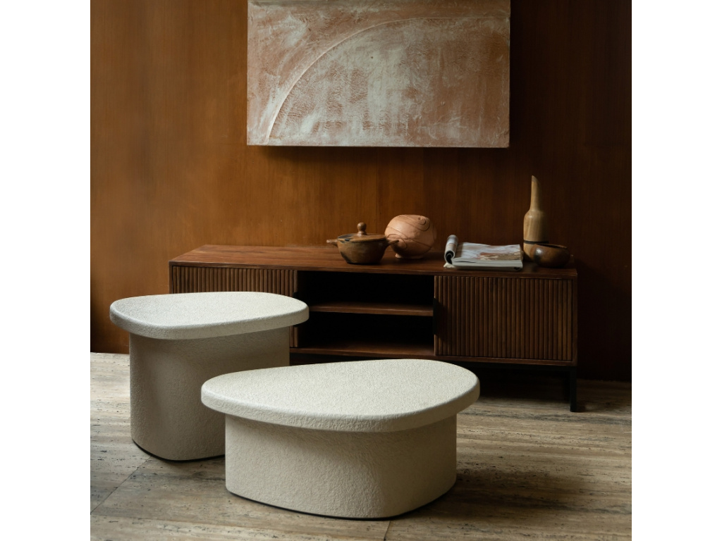 Odkládací stolek DUTCHBONE VEDA vás dostane svým smyslem pro minimalismus a povznese váš interiér na jinou úroveň. Dokonalou souhru tvoří elegantní oblé tvary, linie a jednolitý barevný design. Deska i podnož jsou vyrobeny z MDF a povrch celého kousku představuje skořápka z recyklovaného mramoru. Stolek VEDA zazáří v moderním i vintage interiéru, kde nejlépe vynikne spolu s dalšími doplňky stejnojmenné kolekce.