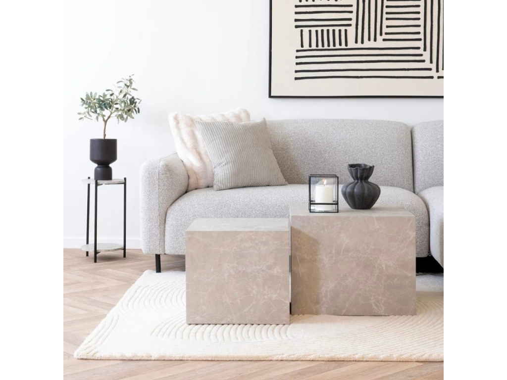 Elegantní odkládací stolek Leva od značky Nordic Living s nadčasovým mramorovým vzorem dokonale zapadne do vašeho interiéru. Stolek je vyroben z MDF materiálu a jeho design doplňuje podnož z černě lakovaného kovu. Skvěle se hodí do obývacího pokoje vedle pohovky – na spodní desku můžete uložit drobnosti, jako jsou knihy, časopisy nebo dálkový ovladač, zatímco horní deska poslouží pro sklenici nápoje, malé občerstvení nebo stolní lampičku.