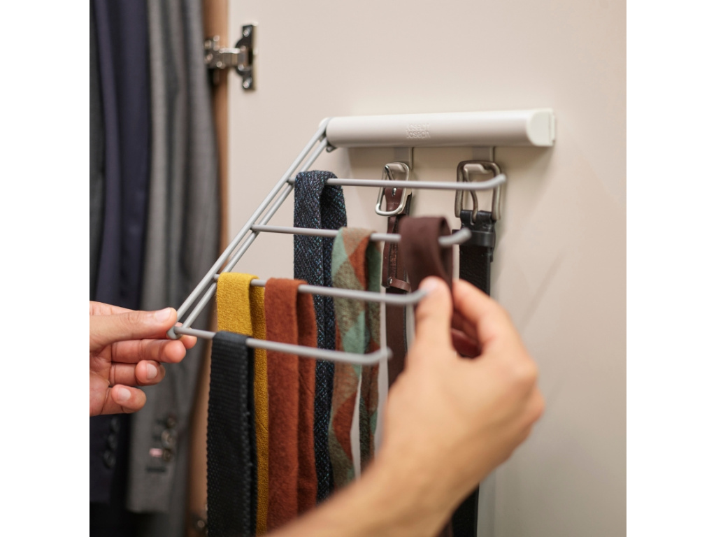 Získejte přehled ve své skříni s chytrým organizérem Orderly, navrženým speciálně pro přehledné a úsporné uložení pásků, kravat, šátků nebo jemných doplňků. Tento elegantní kousek v jemném odstínu přináší funkčnost bez kompromisů a perfektně doplní váš šatní systém. Díky pevným háčkům s hladkým zakončením zavěsíte své doplňky přehledně a bez rizika poškození. Organizér Orderly vám pomůže najít ten správný doplněk během vteřiny – a udrží vaše doplňky krásně zorganizované.