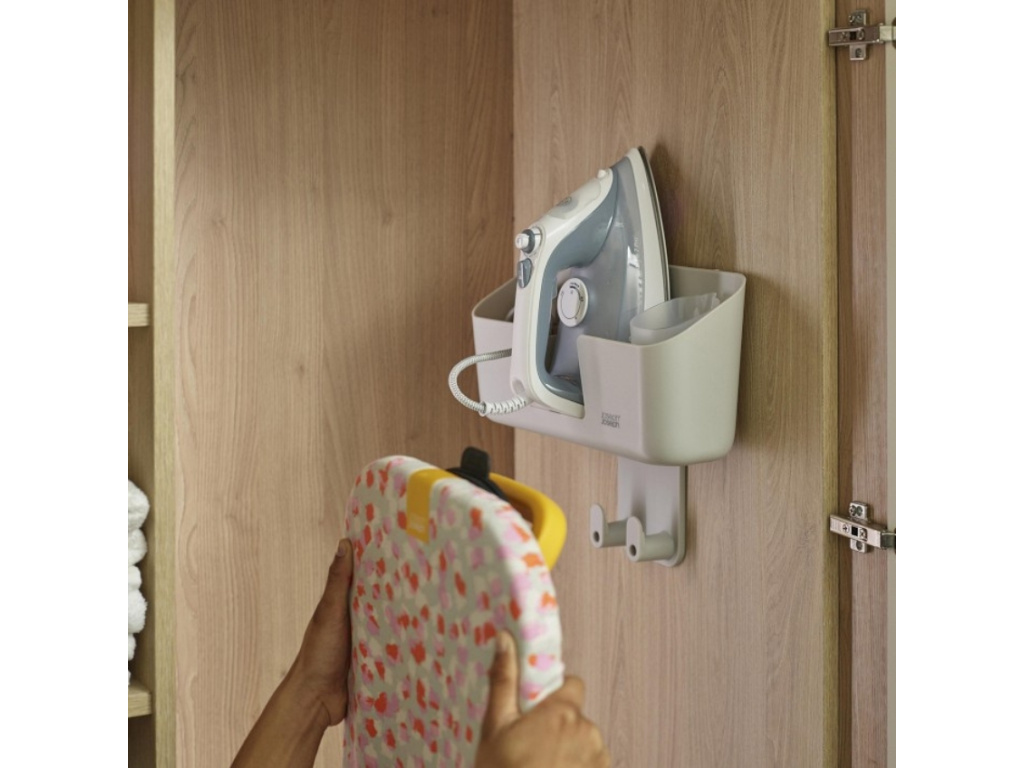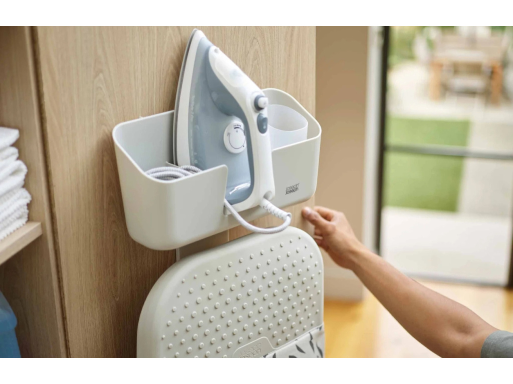 Žehlení možná nepatří mezi oblíbené činnosti, ale s IronHub si ho alespoň zpřehledníte. Tento nástěnný držák na žehličku, prkno i příslušenství vám pomůže udržet vše přesně tam, kde to má být – bez kabelů povalujících se po podlaze a prken opřených v koutě. Žehlička má své bezpečné místo na silikonové podložce odolné vůči teplu. Kabel jednoduše schováte do integrované přihrádky a nechybí ani praktická nádobka na vodu s vlastním úložným prostorem. Díky univerzálnímu háčku navíc snadno zavěsíte většinu běžných žehlicích prken. IronHub nezabírá téměř žádné místo, ale přináší velký rozdíl. Ve chvíli, kdy ho nepotřebujete, je téměř neviditelný. Když ho využíváte, oceníte každou jeho funkci. Hodí se do prádelny, šatny i technické místnosti a svou jednoduchostí zapadne do každého interiéru.