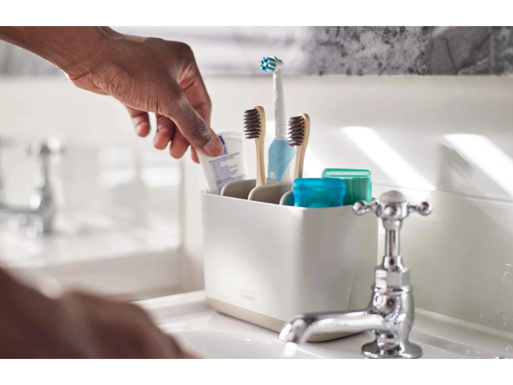 I čištění zubů může být zábavné a stylové! O tom se přesvědčíte s plastovým stojanem na zubní kartáčky Easy Store od značky Joseph Joseph. Stojánek je rozdělený celkem do pěti sekcí, poskytujících prostor pro běžné kartáčky, elektrické kartáčky, pastu a zubní nit. V případě potřeby ho velmi snadno rozeberete a vyčistíte. Disponuje také odvětrávacími otvory pro rychlé vysychání a protiskluznou základnou, díky které nebude klouzat po povrchu.