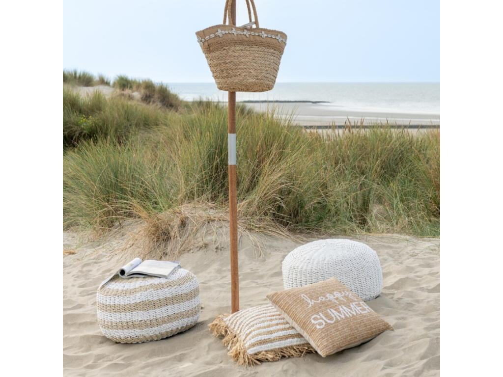 Vychutnejte si pohodlí s kulatým pufem Vaskuti od značky J-Line. Je vyroben z vysoce odolných syntetických vláken, která zajišťují dlouhou životnost a snadnou údržbu. Svým elegantním pruhovaným vzorem a kombinací bílé a béžové barvy, vám dodá do místnosti lehkost a dávku útulnosti. Díky svému jednoduchému, ale zároveň osobitému vzhledu, se stane ideálním stylovým doplňkem do různých místností – do obývacího pokoje, ložnice, ale i dětského pokoje. K dostání je i v dalších barevných variantách a navíc ho můžete sladit i s lehátkem ze stejné série.