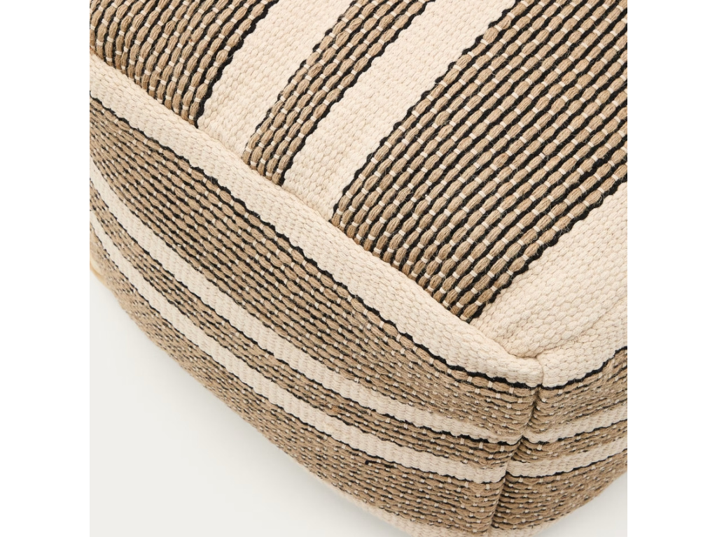 Puf Aynlin je skvělým doplňkem do každého interiéru, který nabízí rovnováhu mezi estetikou a praktičností. Vyrobený z měkké bavlny a ozdobený ručně vyšívanou jutou v přírodních tónech, přináší do prostoru hřejivou atmosféru a ručně vyráběný, autentický šarm. Každý kus je originál – s jemnými odchylkami, které vyzdvihují krásu řemesla. V obývacím pokoji poslouží jako pohodlná podnožka, extra posezení pro hosty nebo stylový doplněk místo odkládacího stolku. V ložnici vytvoří příjemný kout pro odpočinek nebo praktické místo na odložení deky. Aylin snadno zapadne do různých stylů – od boho po rustikální a minimalistický.