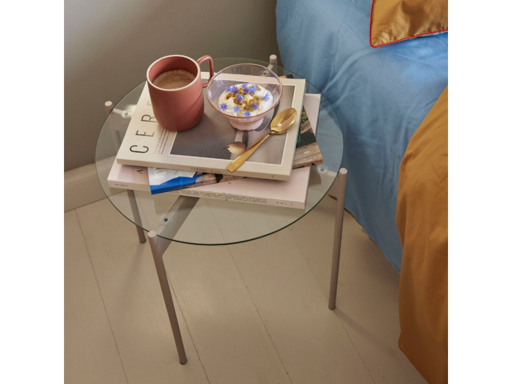 Odkládací stolek kruhovitého tvaru Hübsch Beam vdechne do vašeho interiéru nádech luxusu a originality. Na první pohled upoutá nápaditou podnoží v béžové barvě a transparentní deskou ze skla, díky které působí stolek čistě a vzdušně. Perfektně zapadne do každého interiéru zařízeného v moderním nebo minimalistickém stylu, netřeba se však bát ani jiných kombinací. Stolek Beam nabízíme také v dalších barvách!
