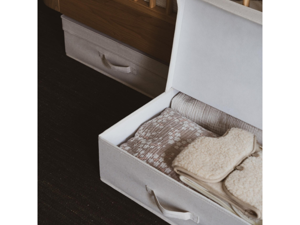 Úložný box Quax Loft je praktickým doplňkem, který vám pomůže udržet dokonalý pořádek ve věcech jako jsou třeba hračky, ložní prádlo či sezónní doplňky. Lze ho využít nejen pod postelí, ale také ve skříních nebo pod komodami – můžete tak využít slepá místa pro uskladnění vašich věcí, a to vkusně a elegantně! Neutrální lněný odstín působí nadčasově a snadno se sladí s jakýmkoli stylem interiéru.