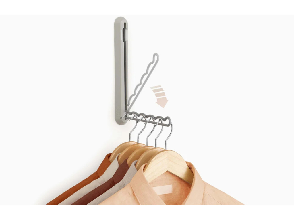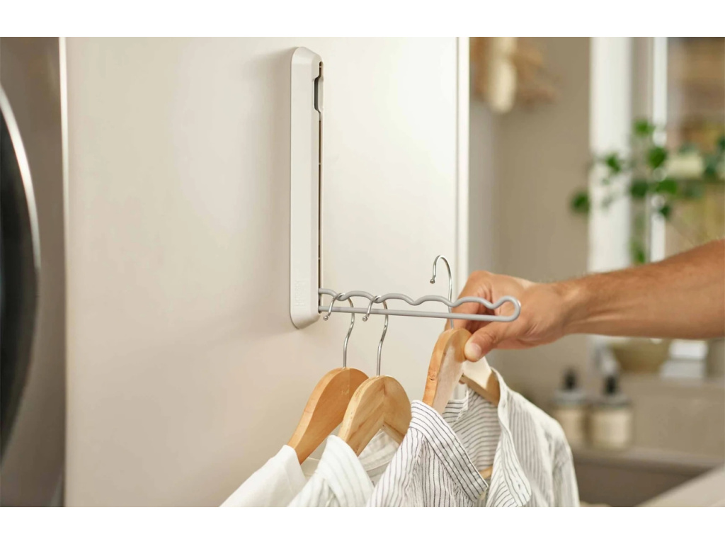 Někdy potřebujete jen trochu více prostoru – na čerstvě vyžehlenou košili, jemné šaty nebo outfit připravený na další den. A právě pro tyto malé, ale důležité chvíle je tu Orderly – výklopný držák na ramínka, který šetří místo, ale zvládne víc, než se může zdát. Snadno ho připevníte na stěnu nebo dveře a během okamžiku získáte praktický prostor až pro pět ramínek. Po použití ho jednoduše sklopíte a necháte čistě splynout se stěnou. Skvěle se hodí do ložnice, koupelny, šatny i prádelny. A přesně jako všechny produkty značky Joseph Joseph, i Orderly spojuje chytré řešení s elegantním designem – nenápadný, ale promyšlený do posledního detailu.