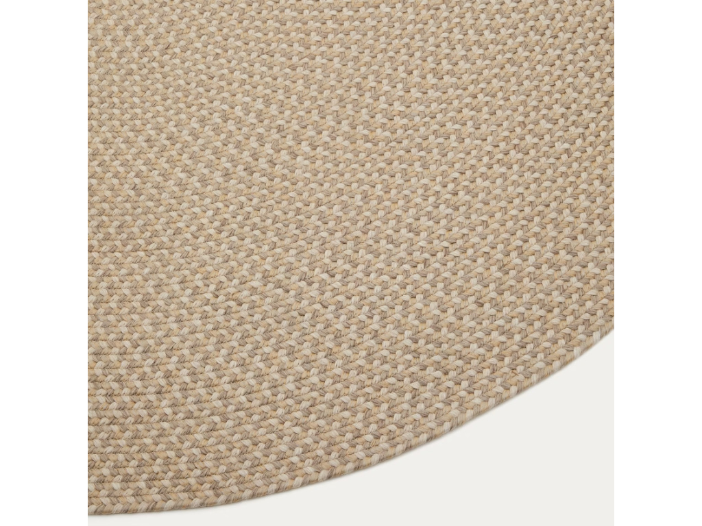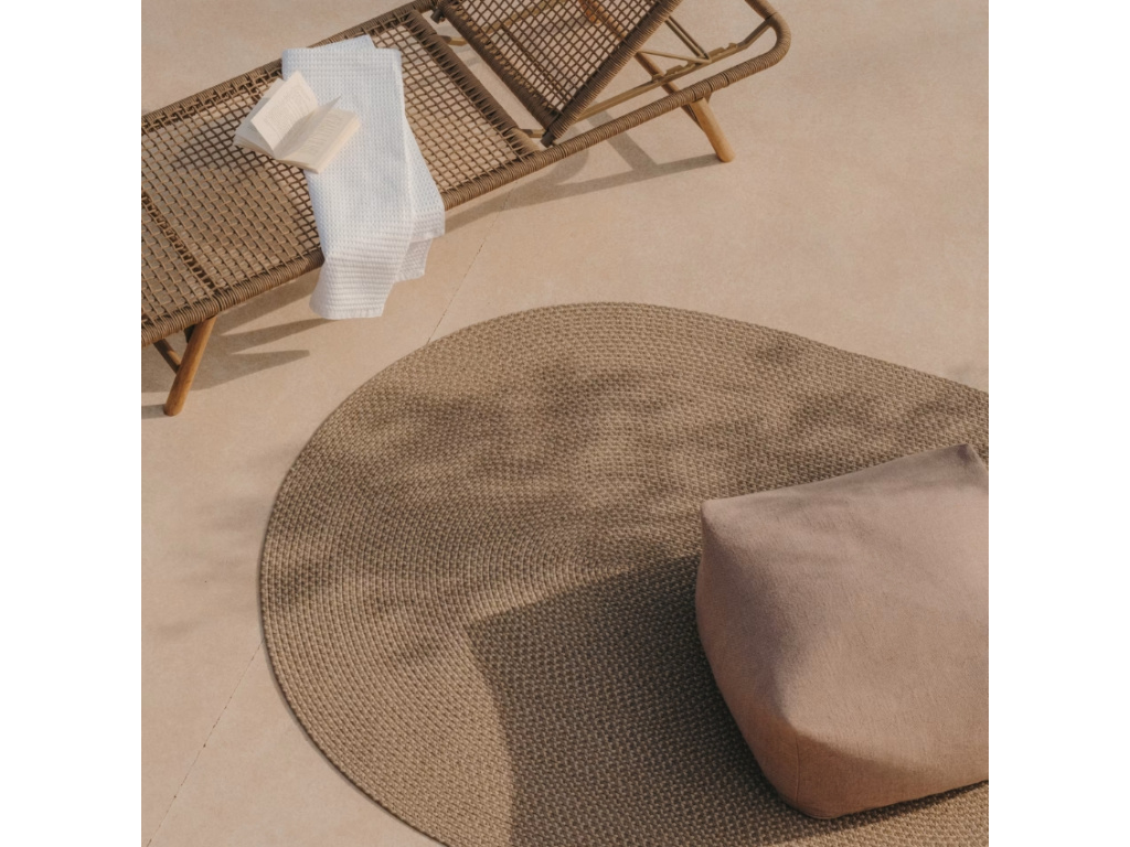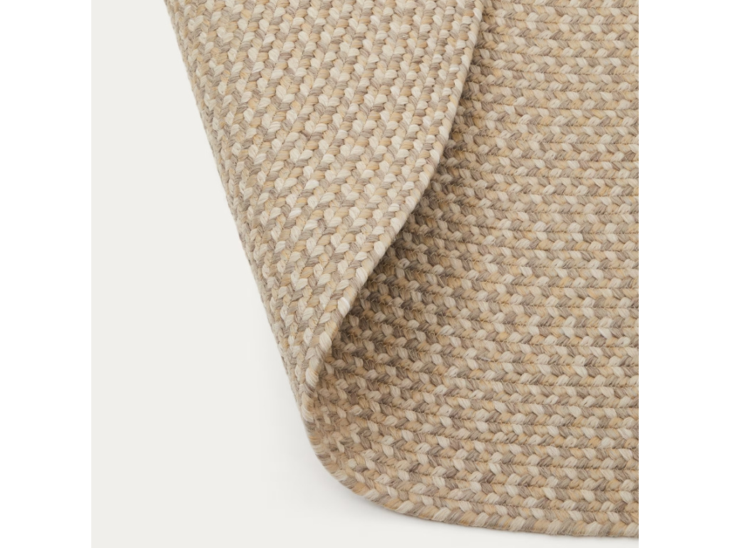 Béžový koberec Rodhe od Kave Home představuje výjimečný kousek, který vás překvapí nejen svým designem. Je ručně tkaný ze 100% recyklovaných syntetických vláken, díky čemuž je pevný, odolný a šetrný k životnímu prostředí. Syntetická vlákna se snadno čistí a jsou odolnější vůči venkovním teplotám. Bude mu to slušet pod pergolou, na terase i u bazénu vedle oblíbeného lehátka.