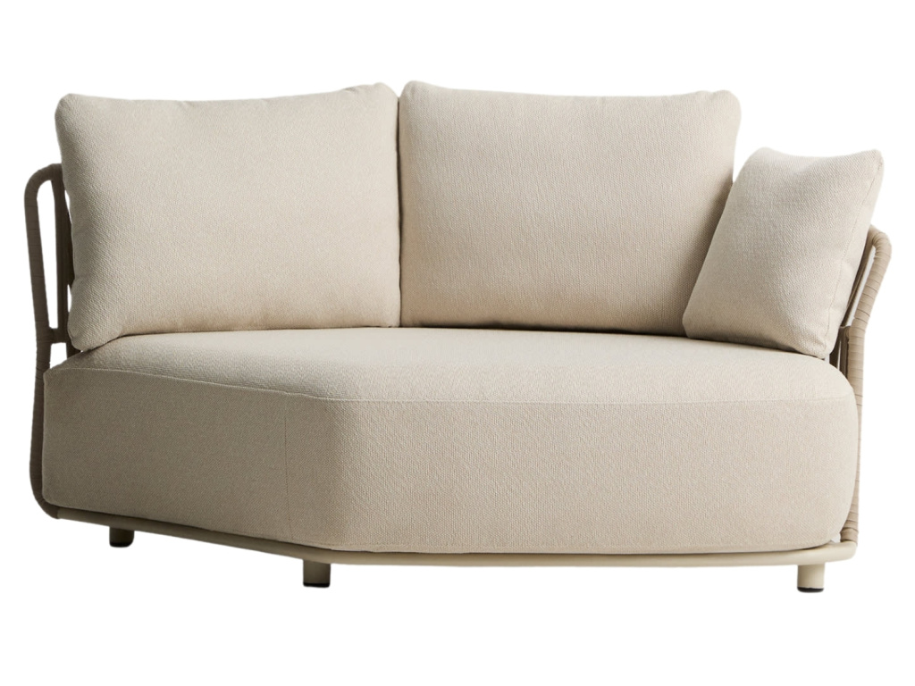 Série Osani zahrnuje křeslo, pohovku i variabilní moduly, takže snadno vytvoříte ucelený lounge prostor přesně podle svých představ. Základem každého kusu je hliníková konstrukce, která vyniká nízkou hmotností a vysokou odolností vůči rzi, korozi i UV záření. Je ideální pro dlouhodobé venkovní použití a zachovává si svůj vzhled i při vystavení slunci. Charakteristickým prvkem celé série je ručně pletené lanové opěradlo. Výplet dodává nábytku osobitý výraz, zároveň poskytuje pohodlnou a lehce obepínající oporu. Měkké polštáře se snímatelnými potahy se postarají o váš komfort, plastové podložky na podnoži ochrání podlahu před poškrábáním a zajistí stabilitu na různých površích. Osani je kolekce, která umožňuje vytvořit sofistikovaný a pohodlný prostor pro odpočinek na čerstvém vzduchu – od samostatného křesla až po modulární sestavu pro chvíle s rodinou a přáteli.