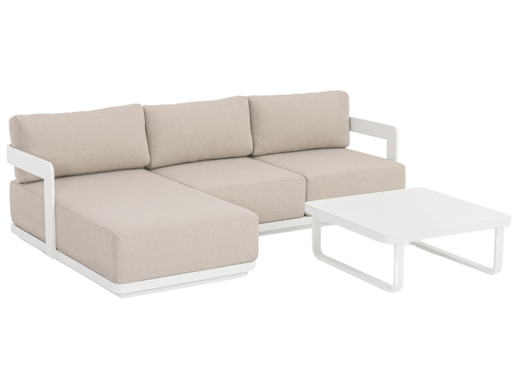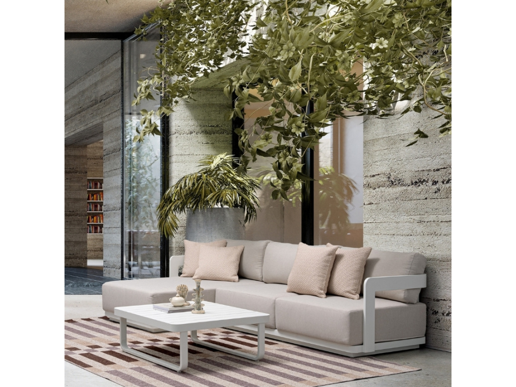 Minimalismus, pohodlí a praktičnost – to je zahradní set Mariel. Jeho modulární provedení vám umožní vytvořit ideální konfiguraci pro relax na terase či zahradě. Hliníková konstrukce je pevná a odolná, zatímco měkké polštáře s vodoodpudivým potahem přinesou dokonalý komfort. Set doplňuje konferenční stolek, jehož jednoduché linie podtrhují moderní vzhled celku. Je perfektní pro ty, kteří chtějí stylový venkovní prostor bez kompromisů v pohodlí.