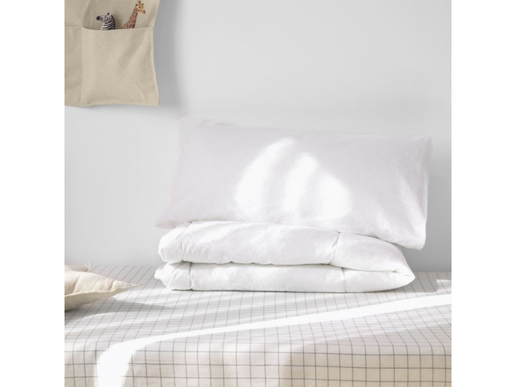 Bílá dětská přikrývka Gianela s potahem ze 100 % bavlny se pro vaše ratolesti stane ideálním společníkem pro pohodlný a zdravý spánek. Přikrývka disponuje odolností proti skvrnám a certifikací Oeko-Tex, která zaručuje, že látka byla vyrobena pouze ze zdravotně nezávadného materiálu. Samozřejmostí je také antibakteriální ochrana přikrývky. Přikrývka je dodávána včetně praktické tašky se stahovací šňůrkou, díky které ji můžete snadno uskladnit nebo převážet.