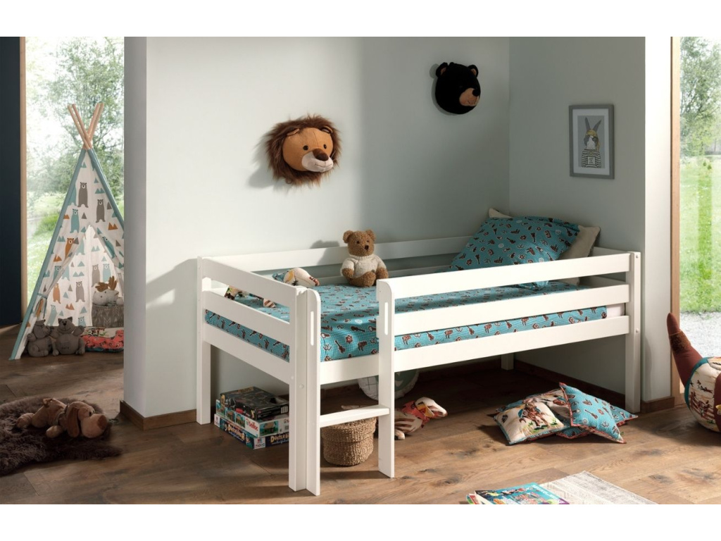 Patrová postel Vipack Pino je vyrobená z borovicového dřeva lakovaného bílou barvou. Dostupná je také v šedém provedení. Do postele se leze pomocí žebříku s jedním schůdkem a její ložná plocha je orámována zábranami, díky kterým se o bezpečný spánek vašeho dítěte nemusíte bát. Volný prostor pod postelí můžete využít k uskladnění hraček. V sérii Pino najdete praktické úložné boxy, které k posteli můžete dokoupit.