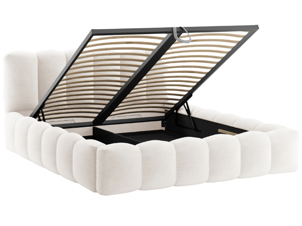 To chciBílá bouclé dvoulůžková postel Lupine 160 x 200 cm s úložným prostorem