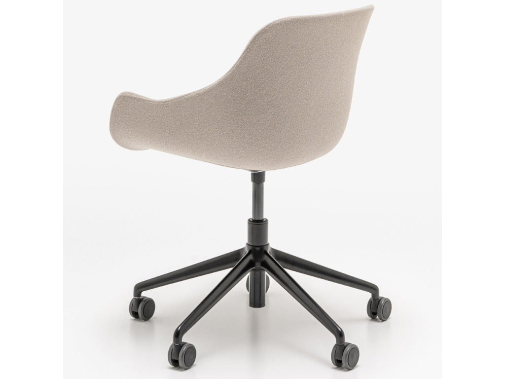 Konferenční židle Baltic Classic od značky .mdd, navržená Krystianem Kowalskim, představuje moderní pojetí pracovního komfortu. Na první pohled zaujme svými měkkými, plynule tvarovanými liniemi, které působí přívětivě a moderně zároveň. Ergonomicky tvarovaná skořepina z polypropylenu s měkkým pěnovým polstrováním nabízí pohodlí i při dlouhém sezení. Integrované područky plynule navazují na tvar sedáku, čímž vytvářejí harmonický a přirozeně elegantní celek. Základna z leštěného hliníku je nejen elegantní, ale i praktická – umožňuje otáčení o 360°, plynulé nastavení výšky sedu a díky kolečkům snadný pohyb po prostoru. Židle se tak dokonale přizpůsobí jak pracovnímu tempu v kanceláři, tak klidnějšímu rytmu domácí pracovny. Baltic Classic je navržena s ohledem na udržitelnost – používá recyklovatelné materiály a látky z recyklovaných vláken, čímž dokazuje, že moderní design může být šetrný k přírodě i dlouhodobě odolný.