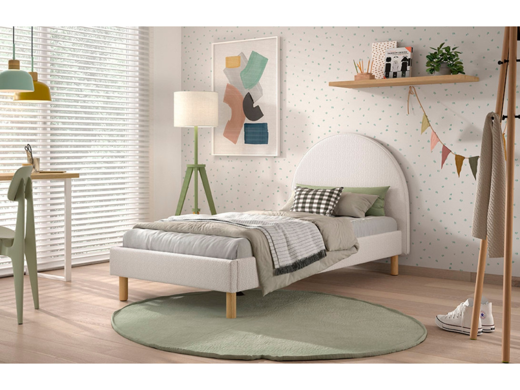 Stylová dětská postel Moon od značky Vipack oživí nejeden dětský pokojíček. Moon je vyrobena z MDF a čalouněna bílou bouclé látkou. Bouclé látka je velice příjemná a měkoučká na dotek a dodá posteli nádech luxusu a elegance. Postel je doplněna o borovicovou podnož, která doladí design celého kousku. Minimalistický tvar postele s oblým čelem ve tvaru půlměsíce vynikne v moderním interiéru.
