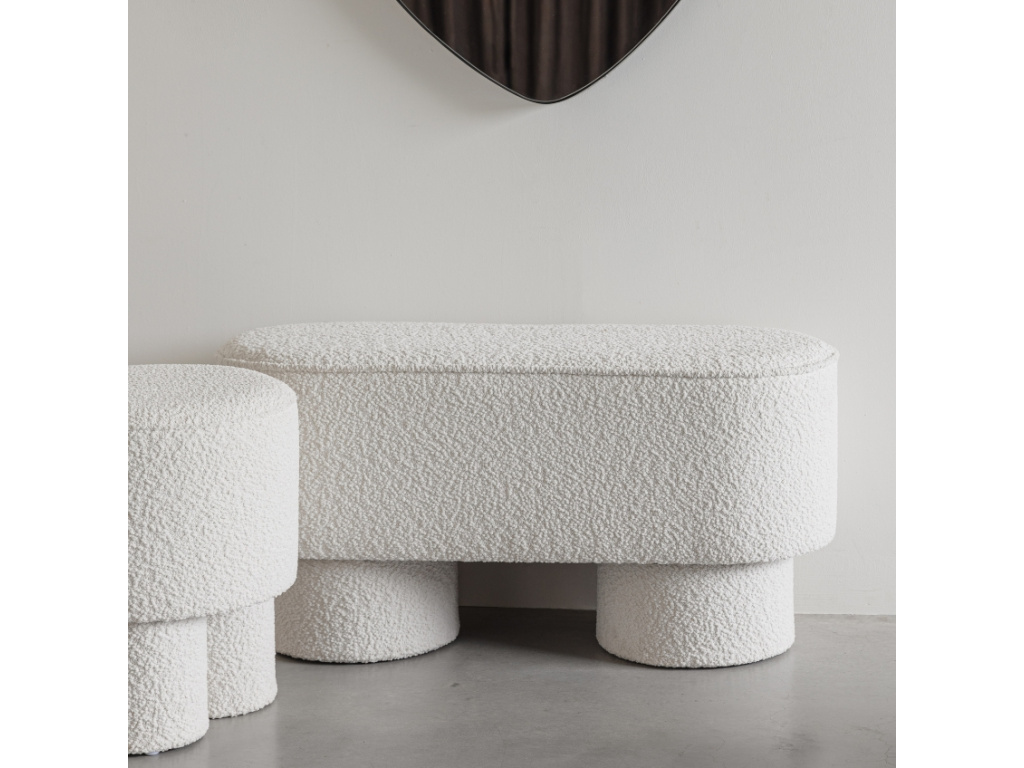 Stolička MARCOS od značky White Label Living představuje minimalistickou designovku, která vašemu domovu přinese moderní nádech. Stolička se skládá ze čtyř jednoduchých válců, jejichž oblé křivky dokonale ladí s měkkou bouclé tkaninou. Rám stoličky je vyroben z borovicového MDF a výplň z polyuretanové pěny zajistí pohodlné sezení. Ať už si budete chtít přečíst knížku nebo posadit se po náročném dnu, bude stolička MARCOS vždy perfektní volbou.