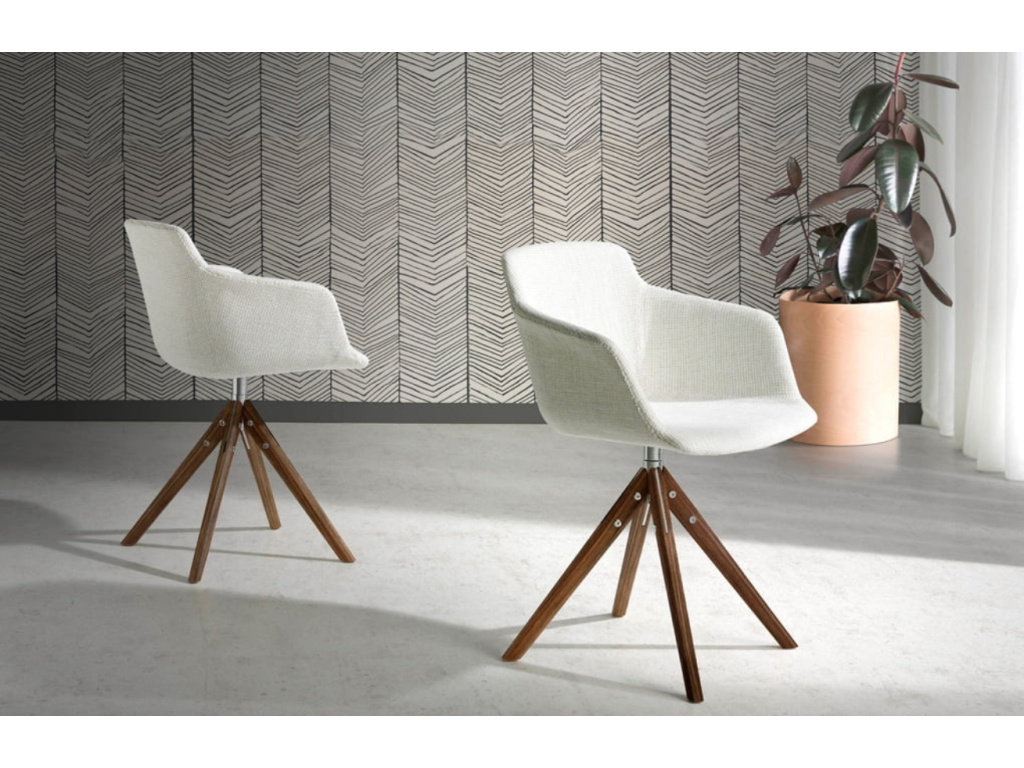 Angel Cerdá představuje stylovou otočnou židli, která se stane ozdobou každé místnosti. Je čalouněna bílou látkou s nádechem do krémové, což v kombinaci s podnoží z jasanového dřeva lakovaného v barvě ořechu vytváří teplý hřejivý dojem. Díky ergonomickému designu s područkami a sedákem z pohodlné polyuretanové pěny nabízí maximální komfort. Její moderní a nadčasový design je ideální pro jakýkoli obývací pokoj, jídelnu nebo pracovnu. Přineste do svého domova styl a pohodlí s touto jedinečnou židlí.